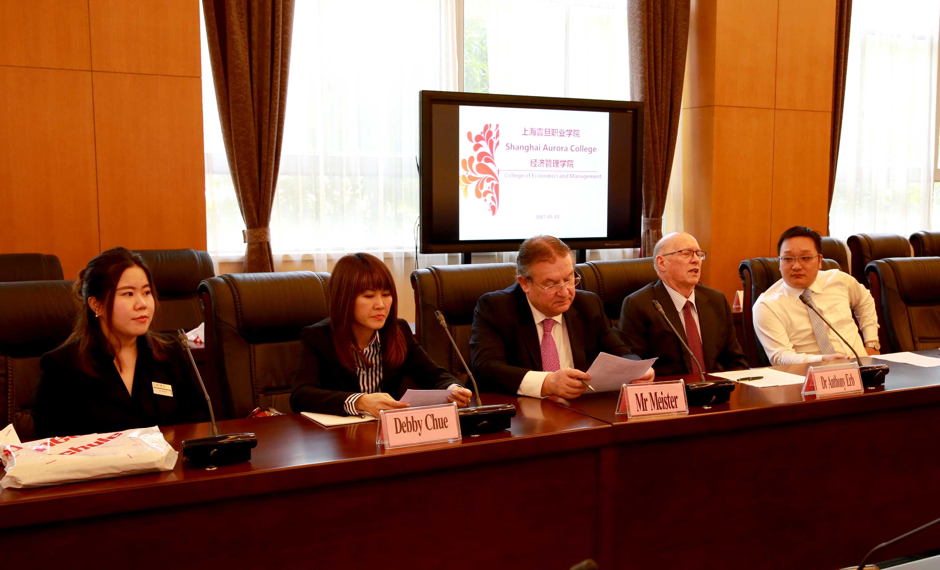 會議在張沈董事長的主持下開始,首先由胡靜怡主任向Meister先生一行詳細(xì)介紹了經(jīng)濟(jì)管理學(xué)院的基本情況,以及相關(guān)專業(yè)的人才培養(yǎng)目標(biāo)、專業(yè)特色、課程設(shè)置等情況,之后雙方就共同培養(yǎng)和海外深造的合作方式及途徑進(jìn)行了深入的探討。
