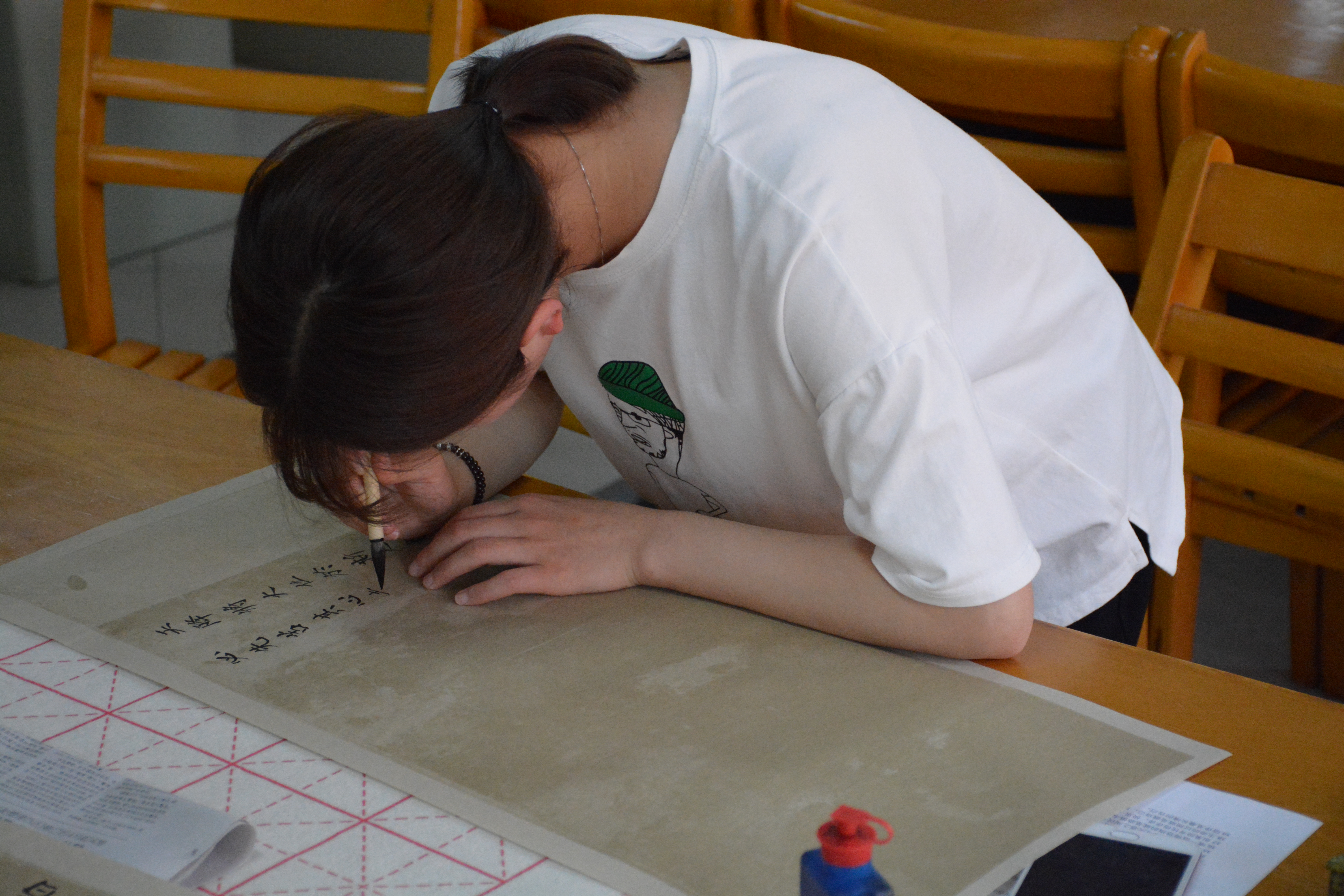 賽場上同學(xué)們即席揮毫,弘揚國粹文化。比賽中,同學(xué)們滿懷激情,用心書寫每一筆筆畫、每一個漢字,盡其所能地展示自身書法的才能。