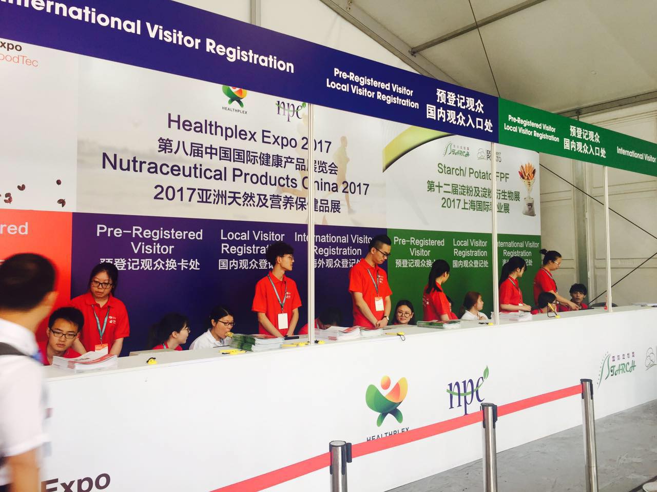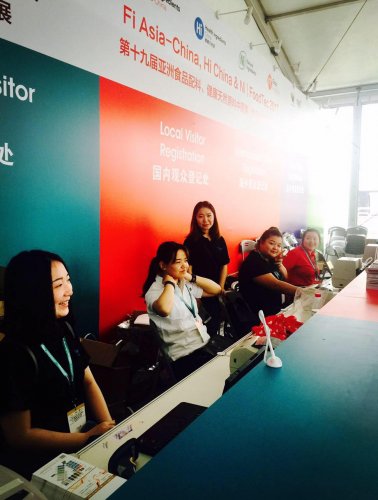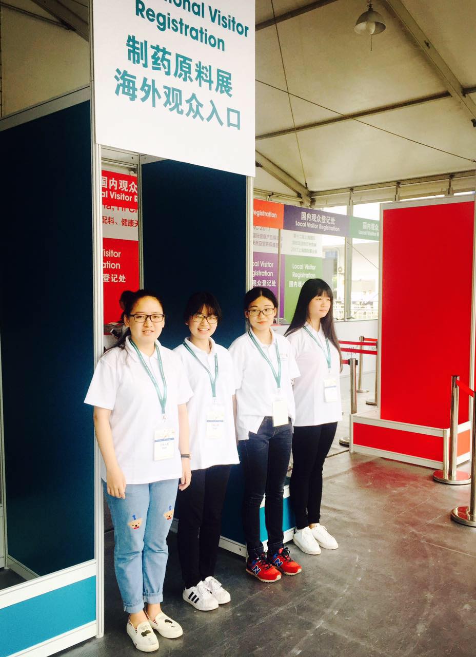 這次實訓是參加在“上海新國際博覽中心”舉行的第十七屆世界制藥原料展中國展的志愿者服務。15級藥學專業(yè)同學于6月19日下午在國際博覽中心接受各自崗位的培訓,6月20日到6月22日進行志愿者服務。本次參加志愿者服務的學生有200余人,主要崗位分別有管理通道、自助機、服務臺和填表臺。填表臺作為觀眾入場的第一關卡,志愿者要耐心的指導各位觀眾通過二維碼進行注冊,對于年紀較大的不善使于用微信的觀眾幫助他們填表完成注冊。注冊完成的觀眾可以去服務臺,服務臺的同學會根據(jù)其填寫的基本信息錄入電腦,打印觀眾證,自助服務機同學的則幫助進行自助打印。獲取觀眾證后的觀眾通過安檢,管理通道的同學對觀眾證上條碼的掃描,鑒別觀眾證的真?zhèn)巍8鲘徫煌瑢W嚴守職責,服從安排,為入場的觀眾們提供最優(yōu)質(zhì)的服務,得到主辦方高度評價。