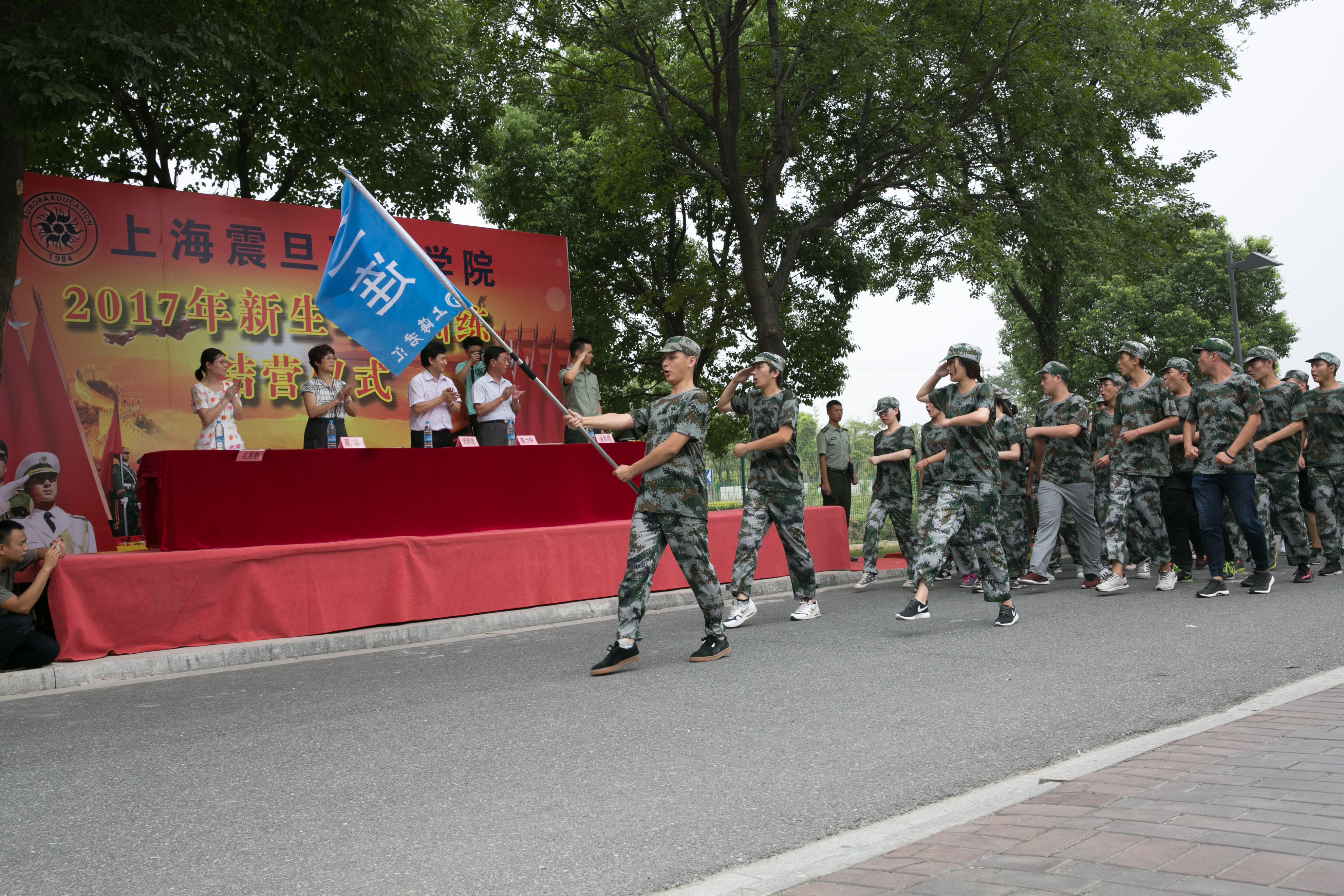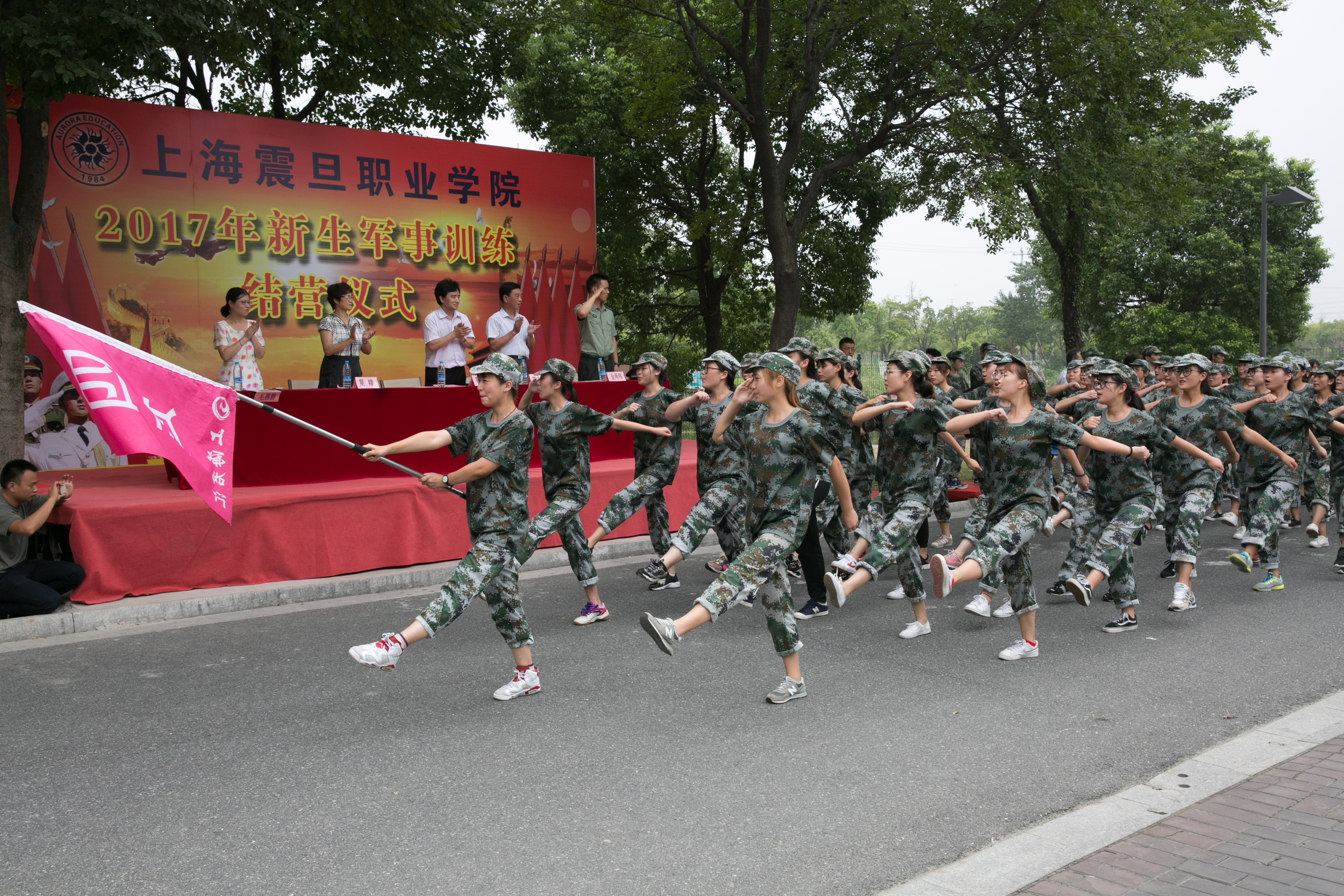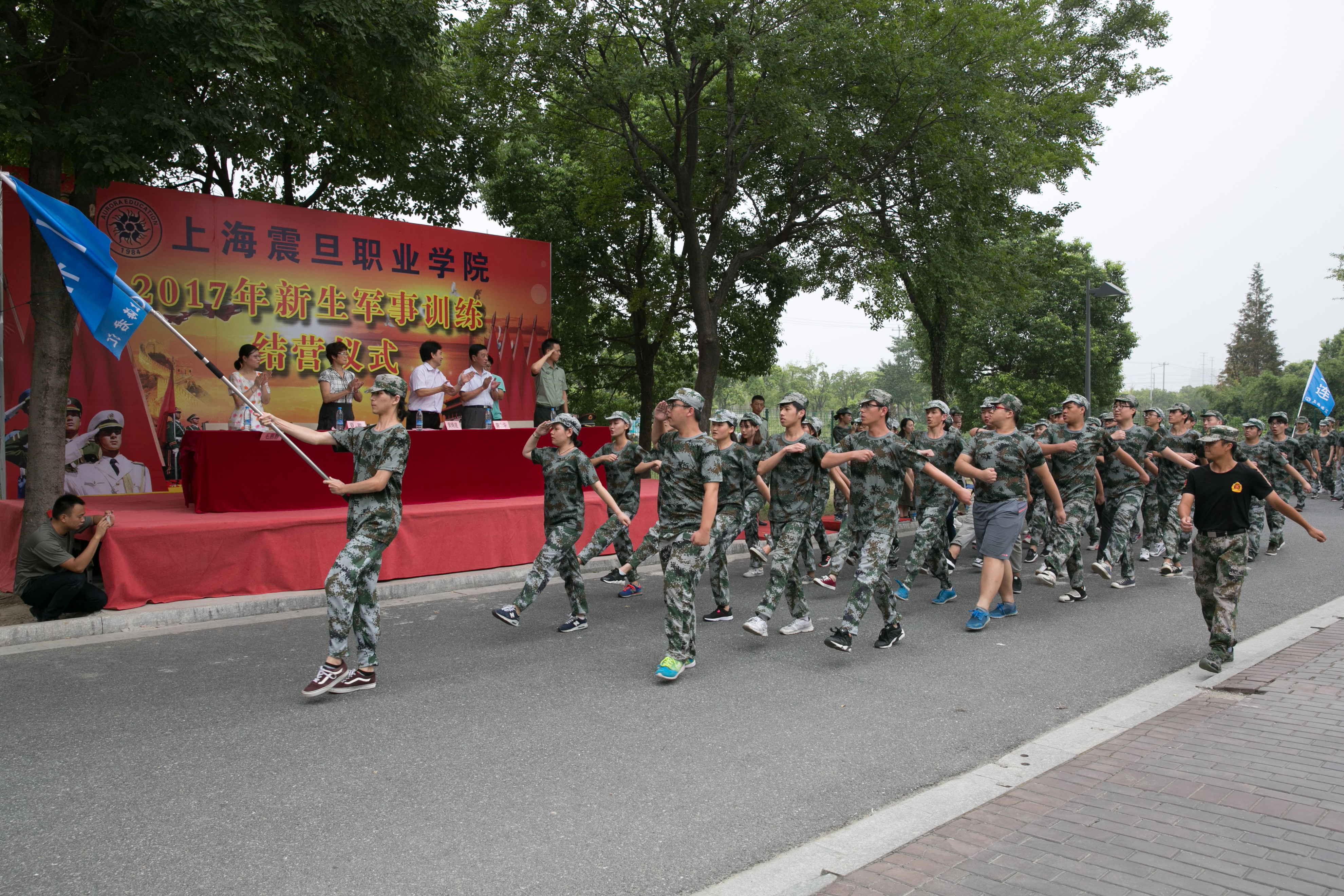9月7日下午,我校2017級(jí)新生軍訓(xùn)結(jié)營儀式在昆山安博軍訓(xùn)基地舉行。黨委書記黃晞建、校長陳力華、黨委副書記夏臻、學(xué)生處處長毛燕靜、武裝部副部長金周偉,以及各二級(jí)學(xué)院院長和黨總支書記參加結(jié)營儀式。