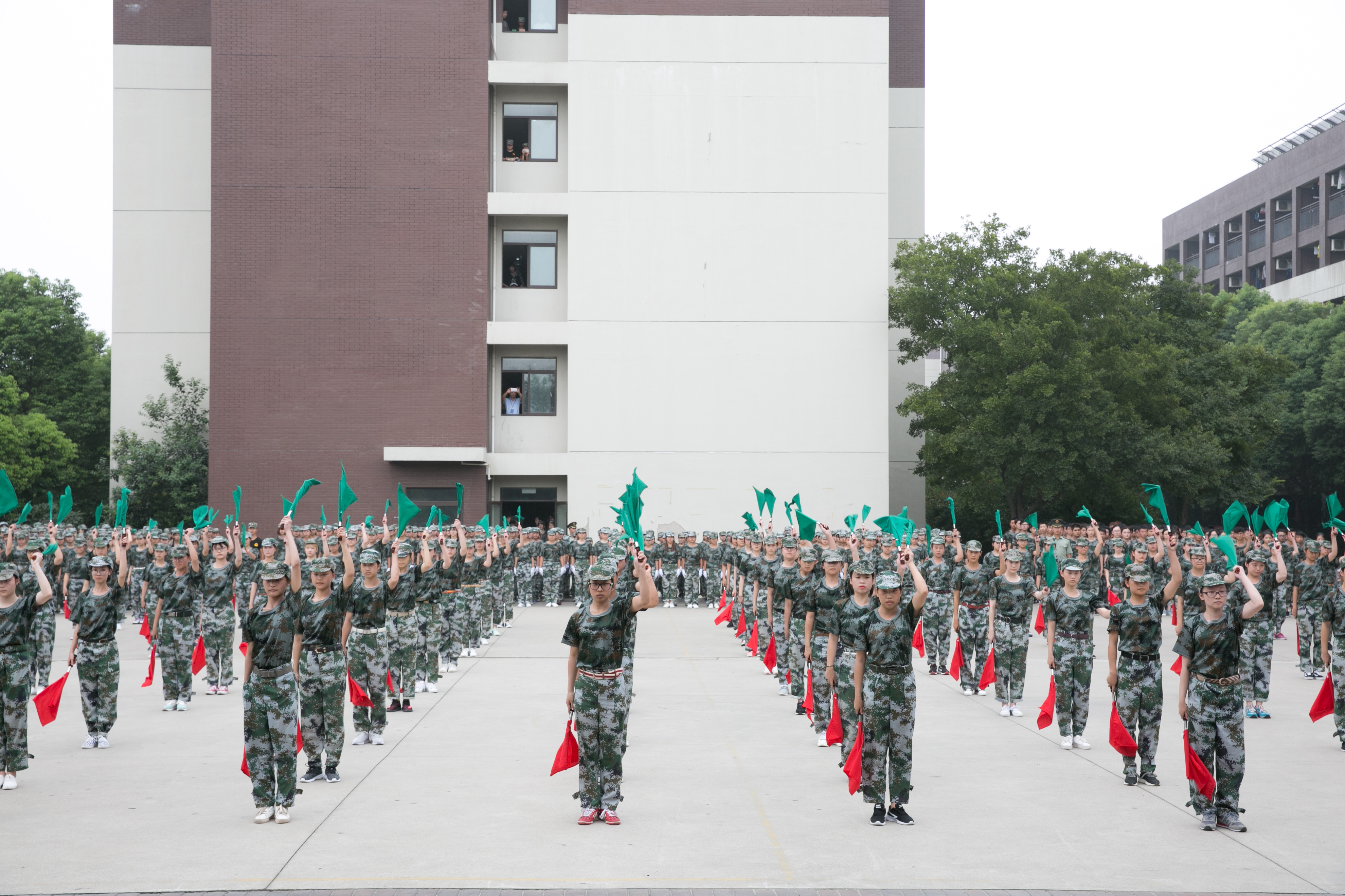 14點(diǎn)00分,所有連隊(duì)和方陣集合完畢,陳力華校長宣布閱兵開始,同學(xué)們用整齊的隊(duì)列、威武的軍姿、響亮的口號(hào)、昂揚(yáng)的斗志接受了校領(lǐng)導(dǎo)的檢閱,十天來的訓(xùn)練成果,給在座的領(lǐng)導(dǎo)及師生們留下了深刻的印象。
