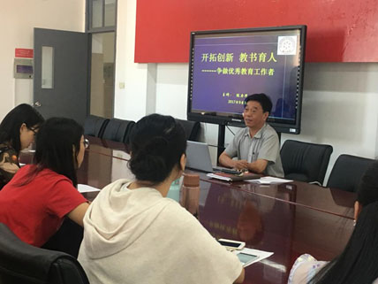 陳力華校長(zhǎng)以他三十多年的從教經(jīng)歷,教導(dǎo)新教師如何了解學(xué)生、如何自省、如何克服教學(xué)過(guò)程中的難關(guān)、如何做一名優(yōu)秀教師;并希望新教師努力實(shí)踐教書育人,爭(zhēng)做優(yōu)秀教育工作者。