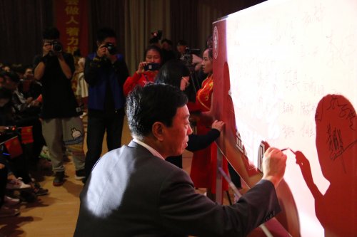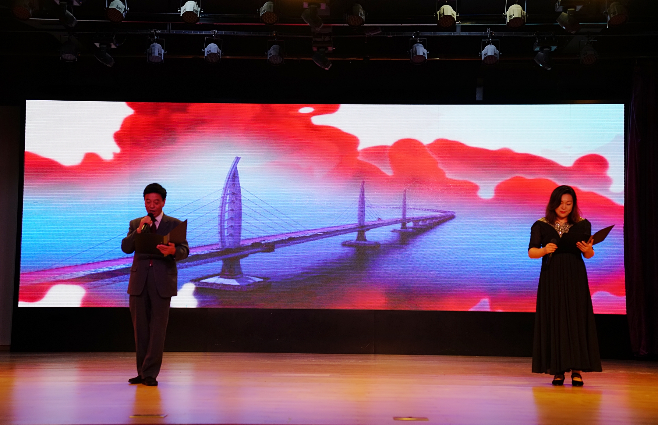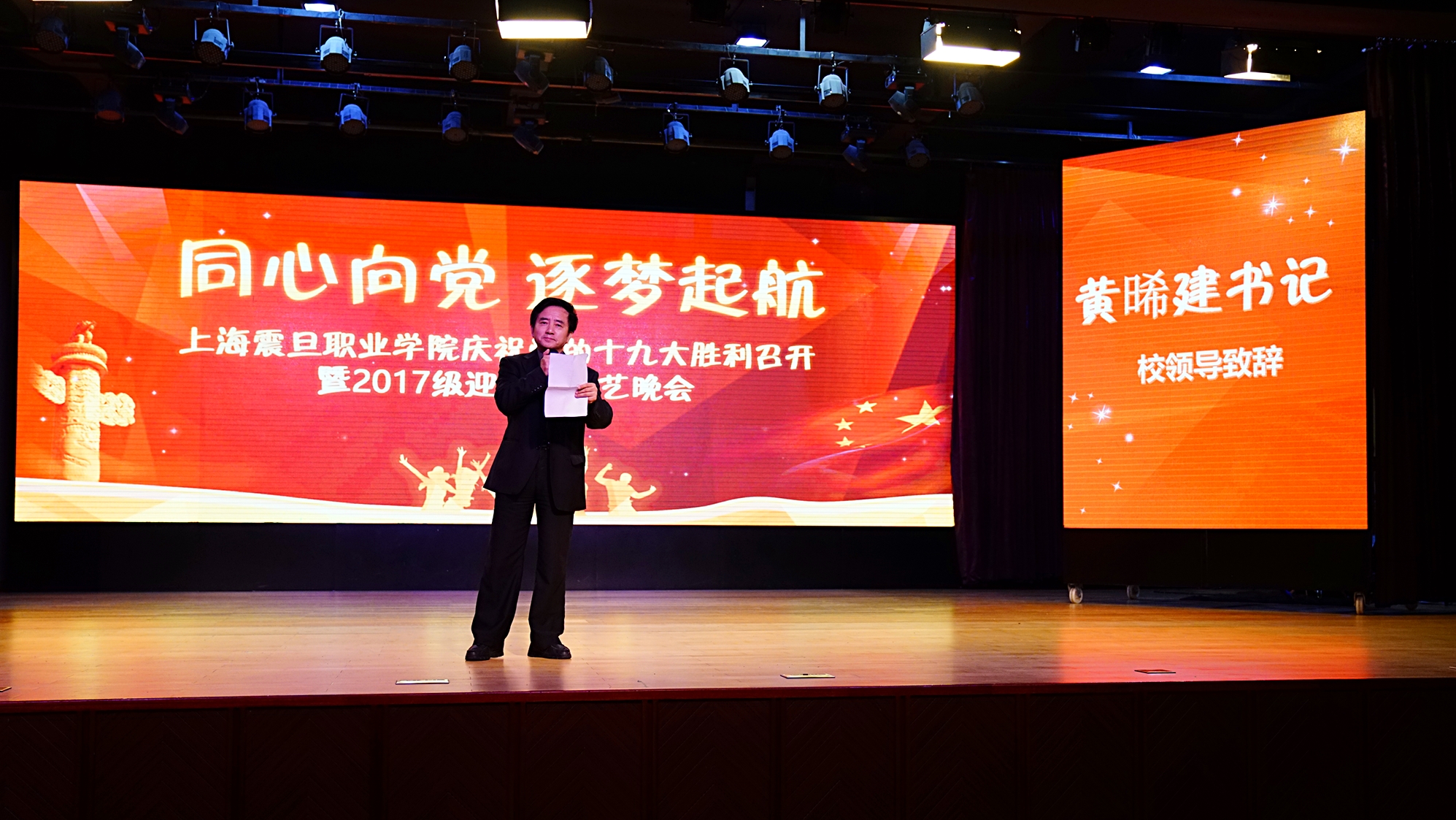 黨委書記黃晞建教授上臺(tái)致辭,書記即興創(chuàng)作了一首《震旦喜迎十九大》,充滿激情地朗誦,表達(dá)了震旦全體師生慶祝黨的十九大勝利召開的共同心聲!