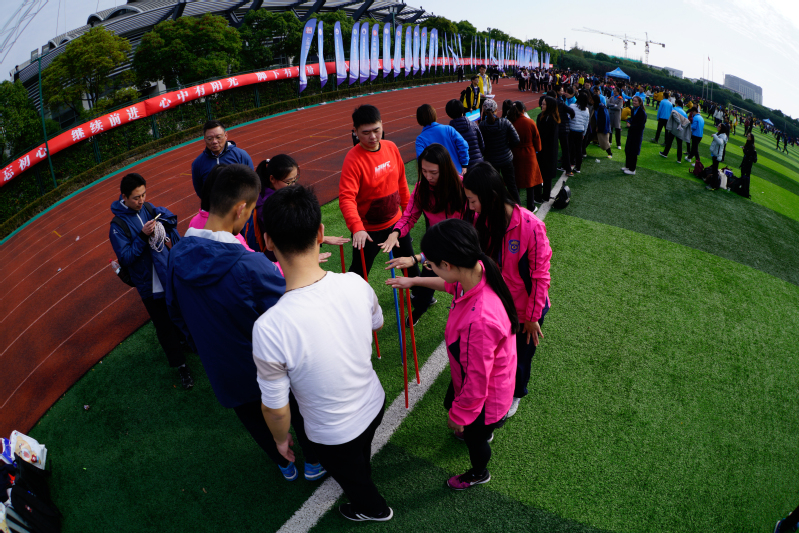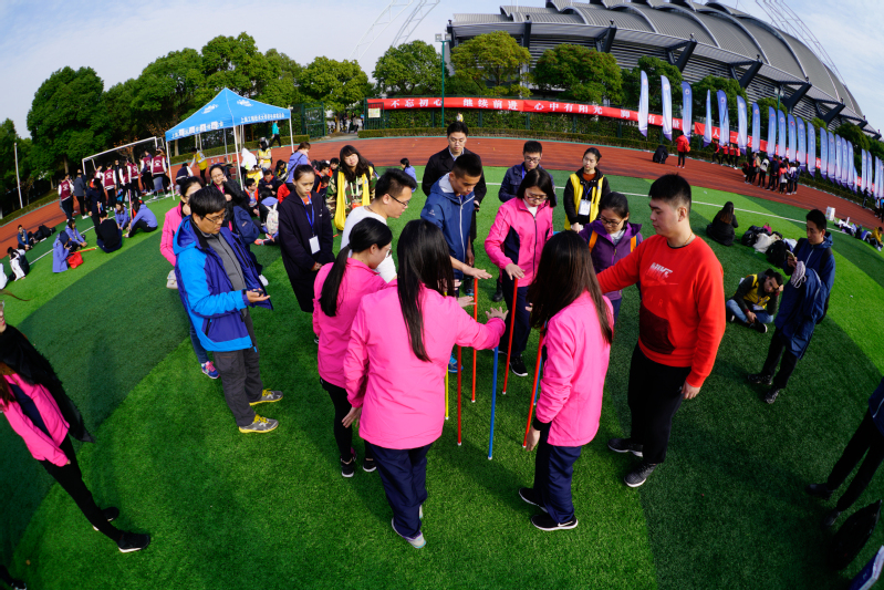 本屆輔導(dǎo)員團隊拓展活動由中共上海市教育衛(wèi)生工作委員會、上海市教育委員會主辦,上海工程技術(shù)大學(xué)承辦,上海53所高校的1000余名輔導(dǎo)員參加了本次活動。市教衛(wèi)工作黨委副書記、市教衛(wèi)副主任高德毅,教委德育處處長江耿紹寧,市學(xué)生德育發(fā)展中心主任任沙軍等領(lǐng)導(dǎo)蒞臨現(xiàn)場,并做了重要講話?;顒庸灿伞袄K舞飛揚”、“氣拔山河”、“不倒森林”、“一鼓作氣”“坐地起身”五個項目組成。我校輔導(dǎo)員充分發(fā)揮團結(jié)拼搏的精神,凝心聚力,勇于挑戰(zhàn),出色地完成了每一個項目,彰顯出震旦人強大的凝聚力和集體榮譽感,最終榮獲團隊拓展活動“三等獎 ”。