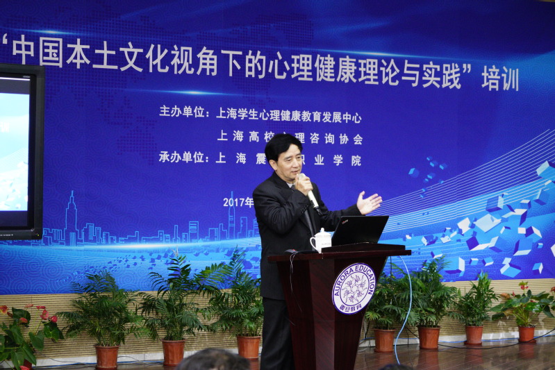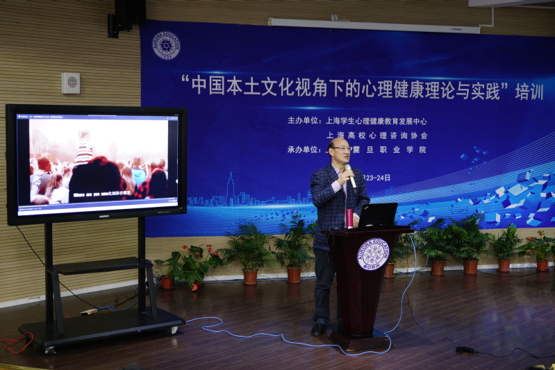 為深入學(xué)習(xí)落實(shí)黨的十九大會(huì)議精神,貫徹落實(shí)全國(guó)和上海高校思政工作會(huì)議精神,推進(jìn)本土心理健康教育的發(fā)展,由上海學(xué)生心理健康教育發(fā)展中心和上海高校心理咨詢協(xié)會(huì)主辦、上海震旦職業(yè)學(xué)院承辦的“中國(guó)本土文化視角下的心理健康理論與實(shí)踐”培訓(xùn)班在震旦職業(yè)學(xué)院體藝樓報(bào)告廳隆重舉行。本次培訓(xùn)班為期兩天,共有四位教授擔(dān)任主講嘉賓,他們分別是上海市文史研究館副館長(zhǎng),上海市高校心理咨詢協(xié)會(huì)副理事長(zhǎng)王群教授,上海中醫(yī)藥大學(xué)學(xué)工部副部長(zhǎng)、心理咨詢與發(fā)展中心主任成琳老師,上海立信會(huì)計(jì)金融學(xué)院心理中心主任、上海高校心理咨詢協(xié)會(huì)副會(huì)長(zhǎng)劉純姣教授和上海出版印刷高等??茖W(xué)校思政部主任馬前鋒教授。培訓(xùn)班歷時(shí)2天,近100名學(xué)員來(lái)自全市20個(gè)學(xué)校。