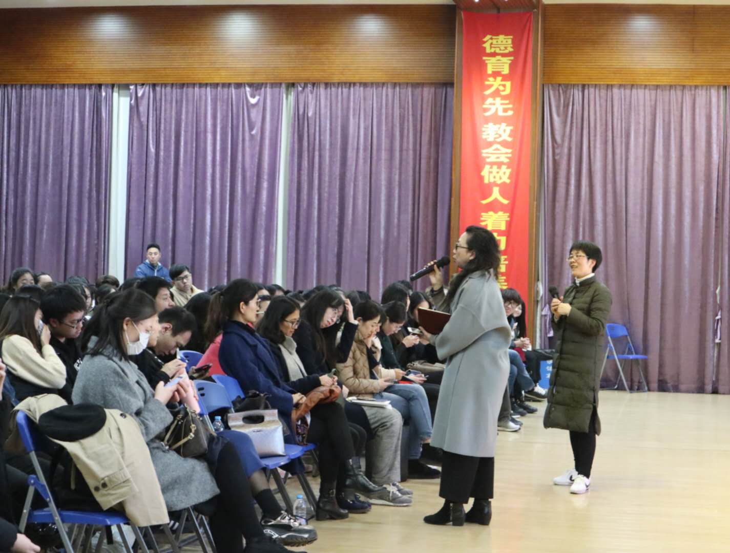 為幫助學前教育專業(yè)的學生準確制定教學活動設(shè)計目標,2017年11月27日晚,教育學院在校大禮堂召開了 “幼師如何設(shè)計教學活動目標”研討會。本次研討會由復(fù)旦大學附屬幼兒園資深教師張筱葉老師主講,教育學院院長兼黨支部書記錢源偉教授、副院長兼學前專業(yè)主任李杰老師、黨支部副書記張軍勝老師、團總支書記楊彥琛老師等全院師生共同參加。