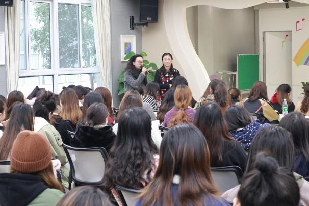隨后,小天鵝幼兒園安排了三位寶山區(qū)骨干幼兒教師跟同學(xué)們交流分享專業(yè)成長(zhǎng)的故事,為我們的學(xué)生提供了很多寶貴的經(jīng)驗(yàn)。