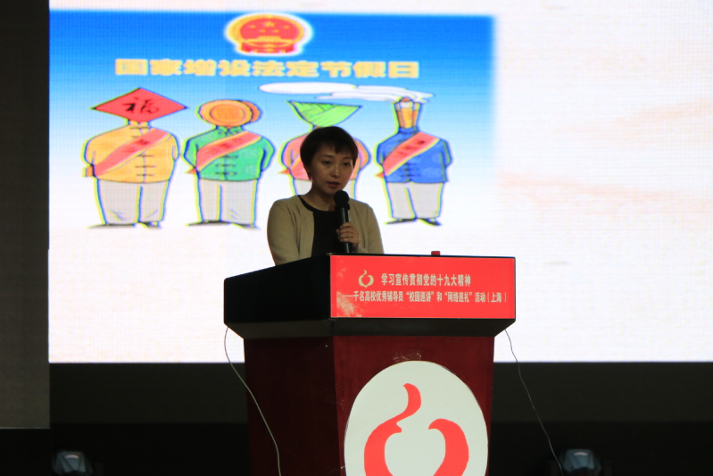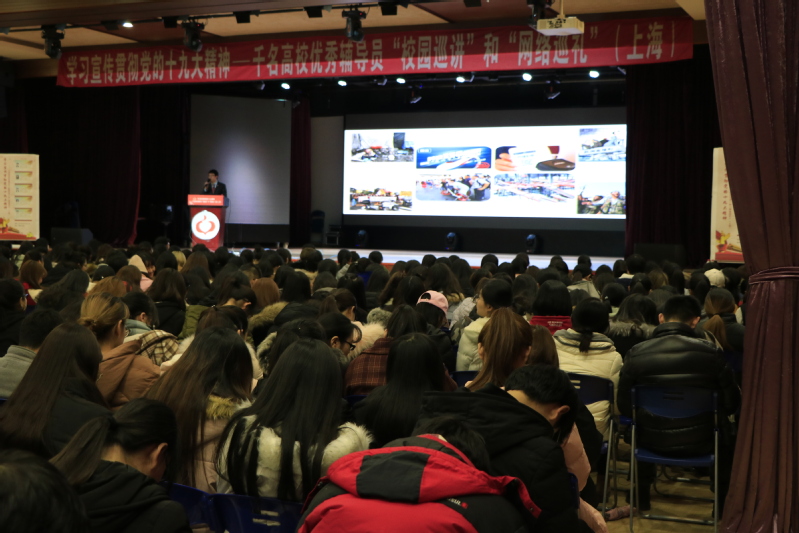 為貫徹落實(shí)中央關(guān)于推動(dòng)十九大精神進(jìn)校園、進(jìn)網(wǎng)絡(luò)等“七進(jìn)”的要求,由教育部主辦的“學(xué)習(xí)宣傳貫徹黨的十九大精神——千名高校優(yōu)秀輔導(dǎo)員‘校園巡講’和‘網(wǎng)絡(luò)巡禮’活動(dòng)”于2017年12月14日晚六點(diǎn)在我校大禮堂隆重舉行?;顒?dòng)由學(xué)工部部長毛燕靜主持,校黨委副書記夏臻出席了本次巡講活動(dòng)。思政教研室主任魯學(xué)軍、全體輔導(dǎo)員、思政課教師、學(xué)生代表等1000余人聆聽了此次報(bào)告。
