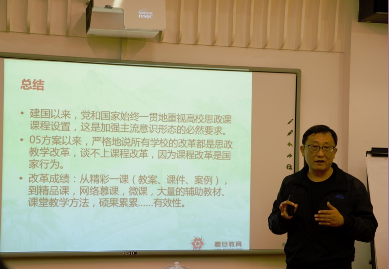 黨委書記黃晞建做總結(jié)講話,他指出推進(jìn)思政課程改革確定了整體方案,明確了方向,接下來重要的是怎么做,我們要以高校思政工作會議、十九大為契機,做到貼近形勢、貼近學(xué)生、產(chǎn)生效果。教材、形勢與學(xué)生新的變化三者結(jié)合,同城異地協(xié)同,做好學(xué)生思想政治教育工作,培養(yǎng)德智體美全面發(fā)展的社會主義建設(shè)者和接班人。