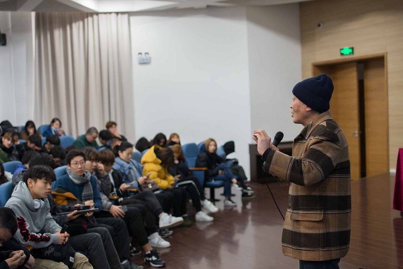 展評(píng)活動(dòng)共展出《表面》《真相》《禍》《囚徒困境》《未來可期》五部微電影作品。按照展評(píng)程序,每部短片放映結(jié)束后由擔(dān)當(dāng)導(dǎo)演任務(wù)的同學(xué)上臺(tái)闡述影片的創(chuàng)作思路與拍攝過程,再由本組指導(dǎo)教師現(xiàn)場(chǎng)隨機(jī)抽取臺(tái)下的同學(xué)提出問題,導(dǎo)演現(xiàn)場(chǎng)做出解答,最后評(píng)委老師分別從技術(shù)層面和藝術(shù)層面給予點(diǎn)評(píng)。導(dǎo)演闡述是展示匯報(bào)的核心,主要考察學(xué)生對(duì)作品的理解,并分享在前、中、后期創(chuàng)作中遇到的問題和和解決的方案。通過展示交流,大家相互學(xué)習(xí)、相互借鑒,共同進(jìn)步。
