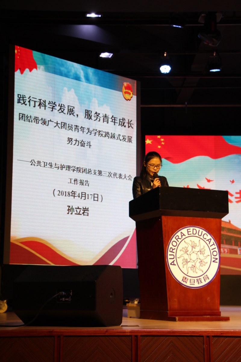 4月17日下午六點(diǎn),公共衛(wèi)生與護(hù)理學(xué)院在校大禮堂舉行團(tuán)總支第三次代表大會(huì),校黨委副書記夏臻、校團(tuán)委書記曹曉莉、公共衛(wèi)生與護(hù)理學(xué)院黨總支書記司曉晶、副書記孫立巖及各二級(jí)學(xué)院團(tuán)總支書記、輔導(dǎo)員出席了大會(huì)。16級(jí)護(hù)理專業(yè)輔導(dǎo)員相萍萍擔(dān)任本次大會(huì)主持人。