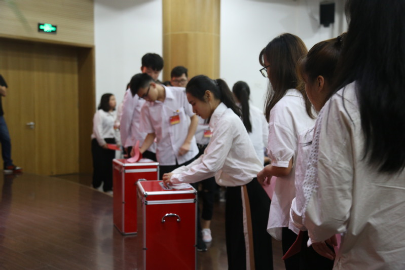大會(huì)第五項(xiàng)議程,由提案工作組組長(zhǎng)周懿婷同學(xué)做提案處理工作報(bào)告,大會(huì)共收到提案64件,內(nèi)容涉及學(xué)生成長(zhǎng)成才、教育教學(xué)、校園文化、生活服務(wù)權(quán)益維護(hù)等方面,會(huì)后將有效提案提交至學(xué)校相關(guān)部門(mén),并及時(shí)跟進(jìn)后續(xù)提案處理工作。大會(huì)第六項(xiàng)議程,通過(guò)第八屆學(xué)生會(huì)主席團(tuán)候選人名單(草案),并由校學(xué)生會(huì)副主席欒海貝介紹學(xué)生會(huì)主席團(tuán)候選人情況。大會(huì)一致通過(guò),王藝淇、周懿婷、傅文靜、阮智勇、胡冰、鄔吟吟六名同學(xué)作為本次學(xué)生會(huì)主席團(tuán)選舉的正式候選人。大會(huì)第七項(xiàng)議程,通過(guò)第二屆學(xué)生常任代表委員會(huì)委員候選人名單(草案),并由第一屆常任委員會(huì)主任韓文軒介紹常任代表委員會(huì)候選人情況。大會(huì)一致通過(guò),王愷、李萱、楊諾穎、肖忠明、金鑫、徐一帆、曹哲駿等11名同學(xué)成為本次學(xué)生會(huì)學(xué)生常任代表委員會(huì)委員正式候選人。大會(huì)第八項(xiàng)議程,通過(guò)大會(huì)選舉辦法(草案),并由校學(xué)生會(huì)副主席謝碧穎宣讀并通過(guò)大會(huì)選舉辦法(草案),大會(huì)一致舉手表決通過(guò)。大會(huì)第九項(xiàng)議程,通過(guò)大會(huì)監(jiān)票人員名單(草案),并由校學(xué)生會(huì)副主席李昊岳宣讀監(jiān)票人員名單(草案),大會(huì)一致通過(guò)黃鈺軒等6名同學(xué)擔(dān)任監(jiān)票人。在同學(xué)們有序進(jìn)行投票后,進(jìn)行大會(huì)第十一項(xiàng)議程,審議并通過(guò)《關(guān)于學(xué)生會(huì)工作報(bào)告的決議》,并由校學(xué)生會(huì)文藝部部長(zhǎng)傅文靜宣讀。經(jīng)過(guò)監(jiān)票人員緊張的統(tǒng)計(jì)后,選舉工作組總監(jiān)票人黃鈺軒同學(xué)向大會(huì)報(bào)告選舉結(jié)果。