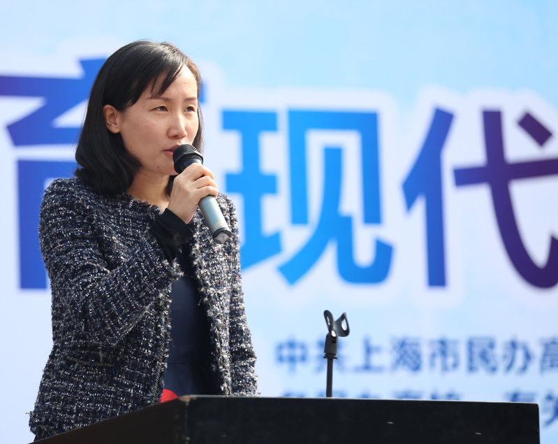 震旦職業(yè)學(xué)院董事長張沈女士發(fā)表了熱情洋溢的致辭,她首先對各位來賓出席本次大會表達(dá)最真摯的歡迎和感謝,對心理健康教育基地落成表示祝賀,對上海教委、上海民辦高校黨委把基地建設(shè)落實(shí)到震旦學(xué)院表示感謝,并對長三角心理健康教育一體化協(xié)作表達(dá)了良好的祝愿。