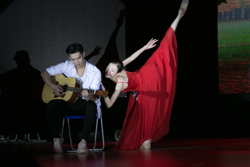 本次比賽我校派出的8名選手均來自東方電影學(xué)院17、18級戲劇影視表演專業(yè)。我校參賽隊的兩大“亮點”也成為整個大賽的兩大“看點”:唯一一支非空乘專業(yè)隊伍和唯一一支全由男生組成的隊伍。這支“男子天團”一出場就奪人眼球,獲得了熱烈的掌聲。面對其它參賽隊伍的專業(yè)表現(xiàn),我院的8名選手毫不怯場、自信滿滿,在風(fēng)采展示、知識問答、情景劇表演、才藝展示環(huán)節(jié)中,都令人印象深刻,充分展露了良好的心理素質(zhì)與個人魅力。