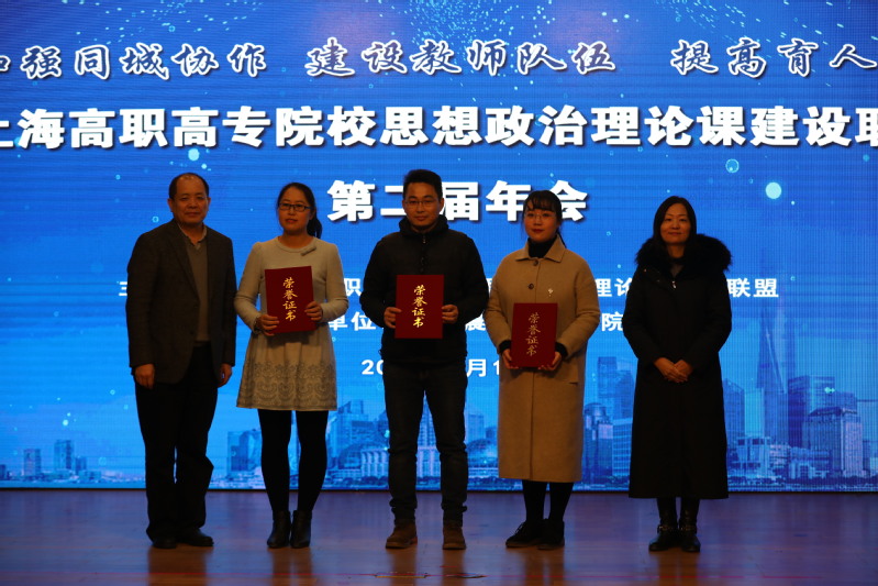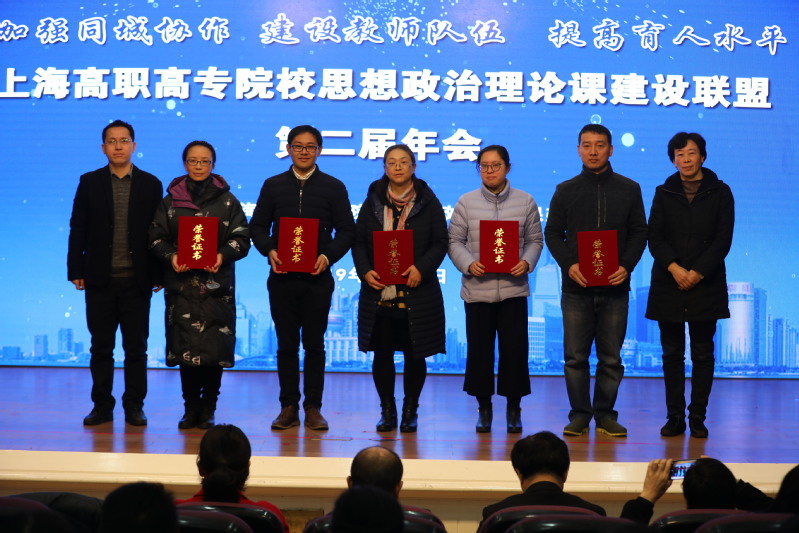 隨后大會頒發(fā)“中國故事---英語視頻大賽”各項獎項,頒發(fā)了“上海高職高專思政理論課教學(xué)設(shè)計比賽”獎項,表彰了上海高職高專思想政治理論課建設(shè)優(yōu)秀集體、先進(jìn)個人、教學(xué)標(biāo)兵和教學(xué)骨干并頒獎。表彰儀式結(jié)束,播放了“中國故事---英語視頻大賽”各校獲獎作品剪輯,上海大學(xué)馮齊教授對中國故事---英語視頻大賽作了精彩點評。上海高職高專院校思想政治理論課建設(shè)聯(lián)盟原會長劉道平向大會做了聯(lián)盟2018年工作總結(jié)。出席大會的領(lǐng)導(dǎo)、聯(lián)盟理事會成員和全體與會師生合影留念。