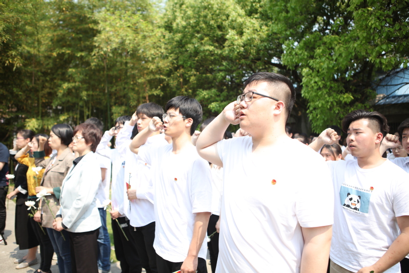 隨后,全體團(tuán)員在莊嚴(yán)肅穆的音樂(lè)中向革命烈士敬獻(xiàn)花籃、向革命烈士三鞠躬并列隊(duì)依次向革命烈士獻(xiàn)花。