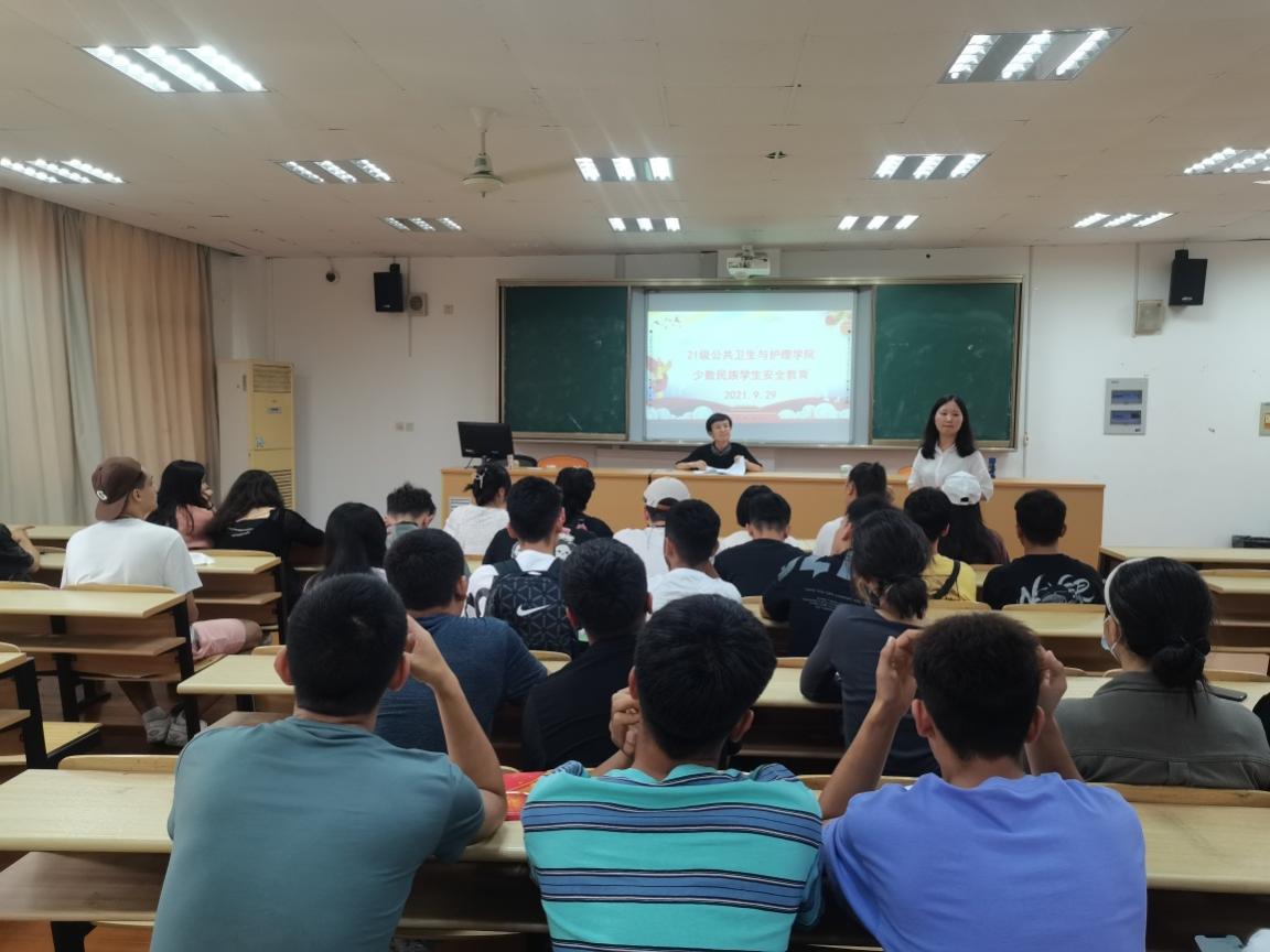2021年9月29日,公共衛(wèi)生與護理學院邀請學校內(nèi)派教師巴了黑婭為學院21級少數(shù)民族學生開展了安全教育座談會。學院黨總支書記王文華、各班級輔導員以及少數(shù)民族同學參加了此次座談會。