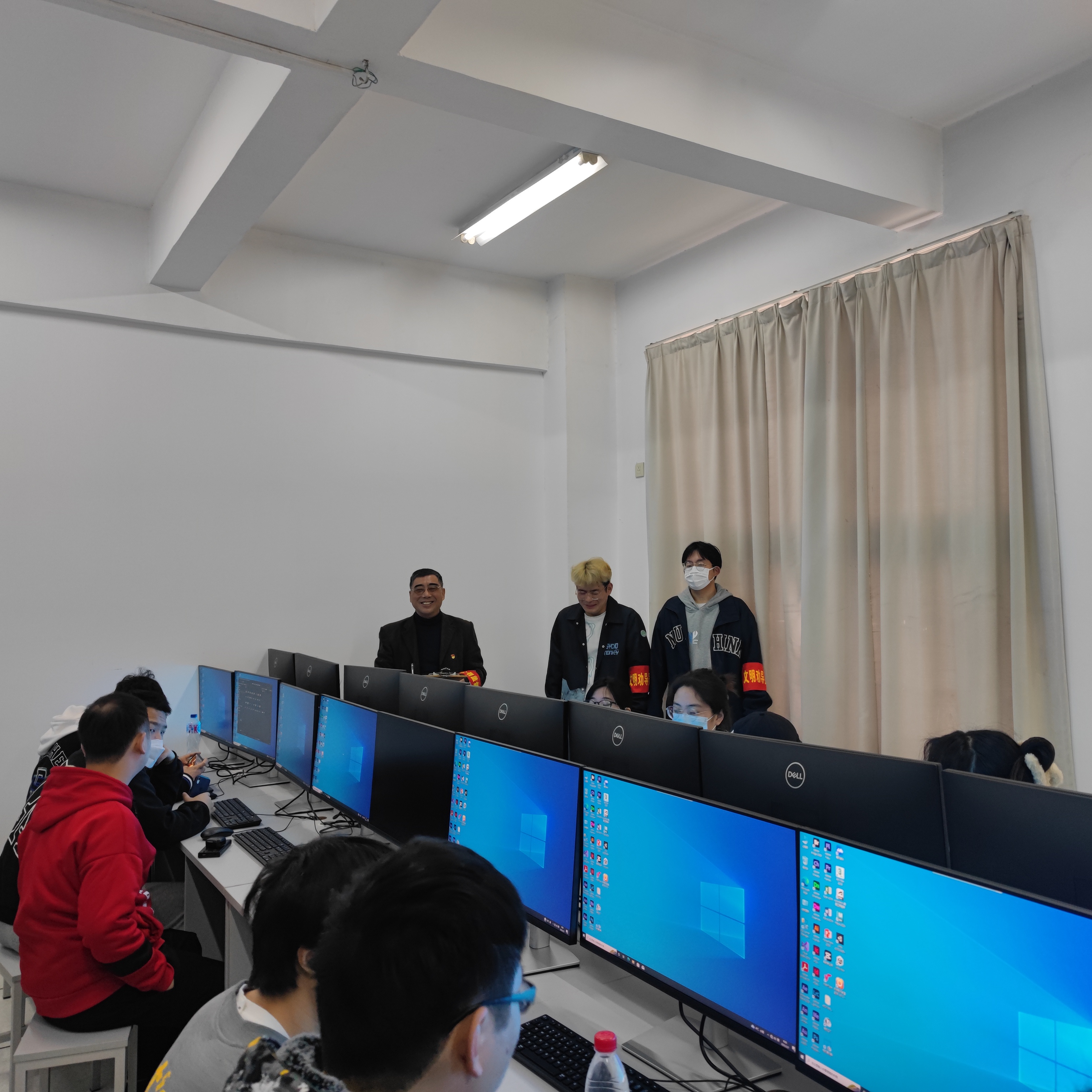 接著,余老師和值勤的班干部來到美蘭湖校區(qū)新改建的309機(jī)房,詢問21數(shù)媒1班同學(xué)使用新電腦的感受,學(xué)生們各抒己見,意味深長!