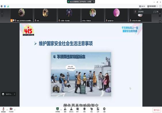 4月15日是第8個(gè)全民國(guó)家安全教育日,為將國(guó)家安全融入到同學(xué)們的日常生活中,強(qiáng)化同學(xué)們保護(hù)國(guó)家安全的意識(shí),智能工程學(xué)院于2023年4月15日在騰訊會(huì)議開展了“千萬師生同上一堂國(guó)家安全教育課”主題活動(dòng),學(xué)院黨總支書記余家晶老師出席會(huì)議,智能工程學(xué)院22級(jí)新生180余人參加。本次會(huì)議由團(tuán)總支副書記徐凱老師主持。
