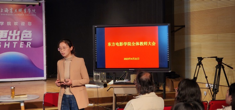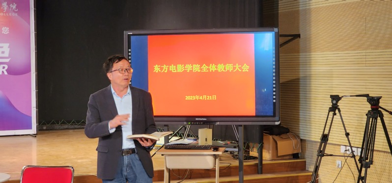 2023年4月21日下午,東方電影學(xué)院在2號(hào)教學(xué)樓新聞演播廳召開了全體教師大會(huì),安排部署近期工作。院長(zhǎng)郜明教授主持會(huì)議,各專業(yè)主任、實(shí)訓(xùn)室主任、教學(xué)秘書、輔導(dǎo)員、專兼職教師、實(shí)訓(xùn)員參加了會(huì)議。