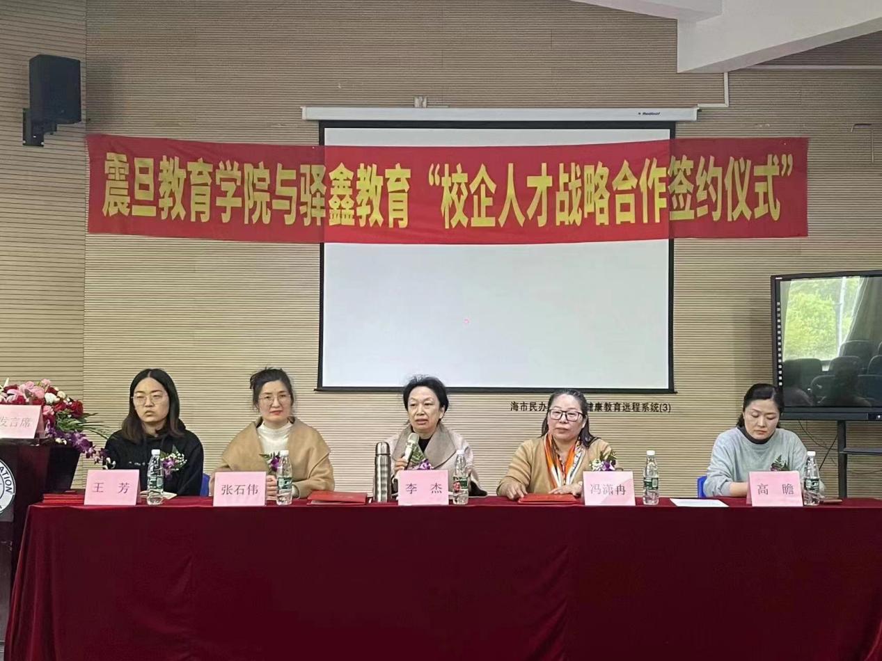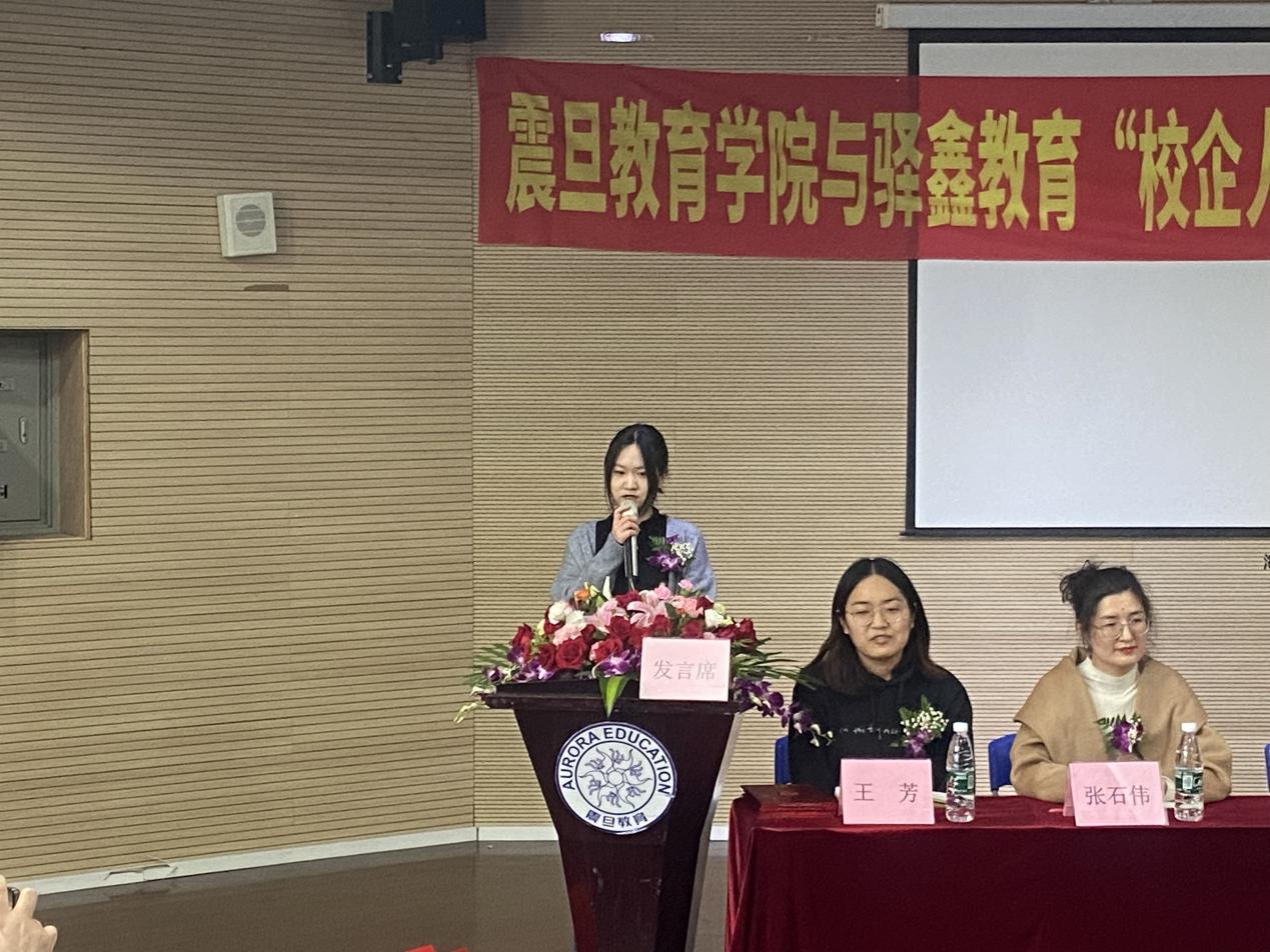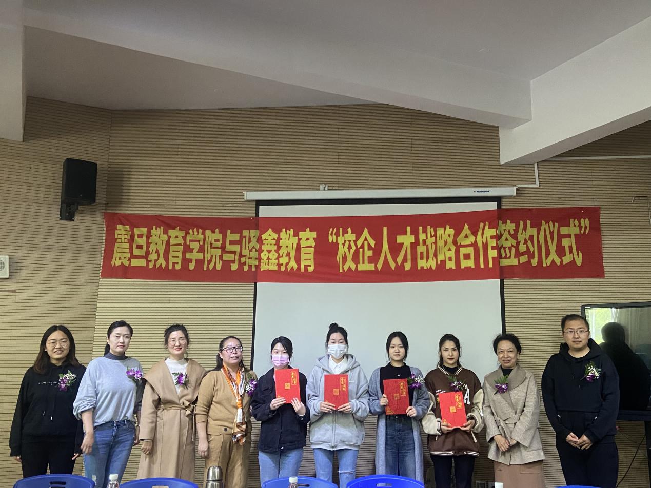 2023年4月24日,上海震旦職業(yè)學(xué)院教育學(xué)院與驛鑫教育開展了“校企人才戰(zhàn)略合作簽約儀式”暨見習(xí)優(yōu)秀學(xué)員頒獎(jiǎng)儀式。教育學(xué)院院長李杰、副院長張石偉、副院長高瞻、黨總支副書記王芳以及驛鑫教育馮瀟冉老師出席本次活動(dòng)。活動(dòng)由張石偉主持。