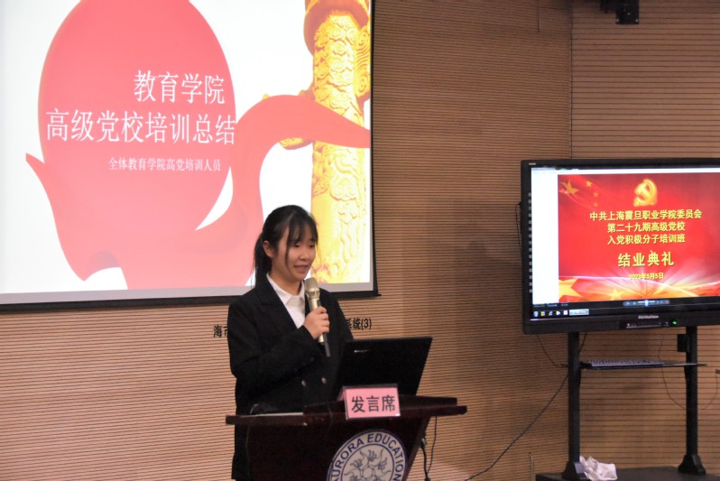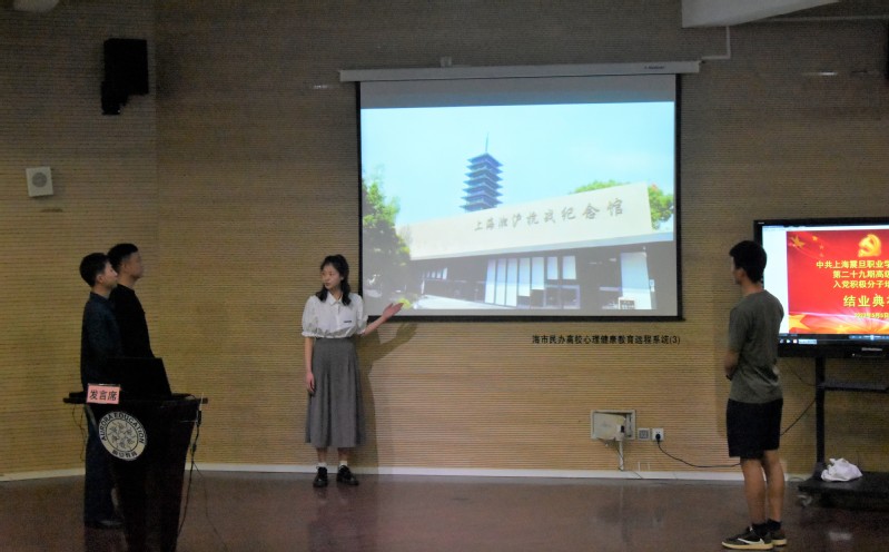 和以往結(jié)業(yè)典禮不同,本次活動要求學員們以學院為單位,自己定內(nèi)容、定形式進行總結(jié)與匯報。在臺上,學員們有的不僅播放了PPT,更制作了小視頻;有的為自己“加課”:采訪了身邊的優(yōu)秀共產(chǎn)黨員并在臺上和大家分享感悟;有的集體上臺一一闡述高黨學習給自己帶來的思想變化;有的利用自己的專業(yè)特長,為大家呈現(xiàn)了一個“小品”,生動地講述了自己的入黨動機……通過這樣的匯報,學員們更好地展示了自己的特色和學院的亮點,讓各總支書記和黨委領(lǐng)導們看到了入黨積極分子們的進步。