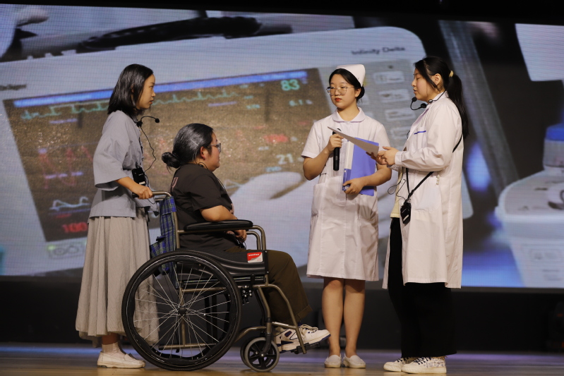2021級(jí)護(hù)理3班同學(xué)們表演的外科情景劇,挖掘了日常護(hù)理工作中容易發(fā)生的醫(yī)患矛盾場(chǎng)景,用舞臺(tái)劇的形式展示了醫(yī)務(wù)人員扎實(shí)的專業(yè)理論知識(shí)、嫻熟的操作技巧和充滿愛(ài)心的呵護(hù),換來(lái)病人的早日康復(fù)的情景,讓臺(tái)下同學(xué)們又一次鞏固了專業(yè)理論知識(shí),更深刻地體會(huì)到醫(yī)患矛盾并非不可調(diào)和,要用心與患者交流。