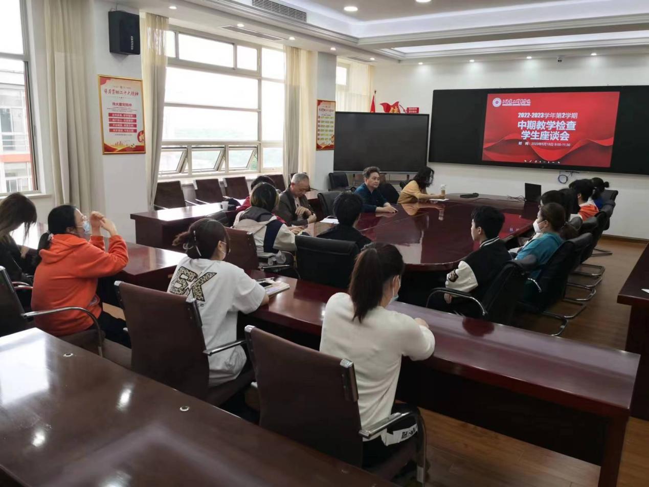 隨后,在1-417大會(huì)議室召開了學(xué)生座談會(huì),教學(xué)督導(dǎo)室主任、4位校外督導(dǎo)專家以及21級(jí)22級(jí)各專業(yè)學(xué)生共27人參加了會(huì)議。參會(huì)學(xué)生由督導(dǎo)室從各二級(jí)學(xué)院隨機(jī)抽取,每位學(xué)生逐一發(fā)言,會(huì)場(chǎng)氣氛活躍,學(xué)生們從課程、教師、部門、學(xué)校等層面,暢所欲言地表達(dá)了自己的想法。
