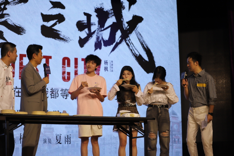 《極寒之城》主創(chuàng)團(tuán)隊(duì)與震旦師生的互動(dòng)環(huán)節(jié),將路演活動(dòng)推向了高潮。導(dǎo)演楊楓和演員夏雨老師介紹了影片拍攝、劇情結(jié)構(gòu)以及拍攝過(guò)程中的花絮趣事。東方電影學(xué)院的學(xué)生把這次路演活動(dòng)看做一次珍貴的學(xué)習(xí)機(jī)會(huì),現(xiàn)場(chǎng)同學(xué)積極向主創(chuàng)提問(wèn),主創(chuàng)們一一做了精彩的回答。主創(chuàng)人員還邀請(qǐng)三位同學(xué)上臺(tái)品嘗了上海名吃小籠包,現(xiàn)場(chǎng)歡樂(lè)不斷,氣氛熱烈。