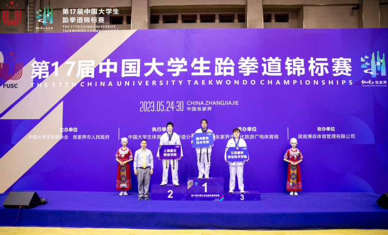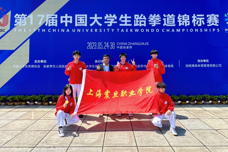 2023年5月30日,第17屆中國大學生跆拳道錦標賽在湖南張家界收官。上海震旦職業(yè)學院跆拳道隊摘得乙組1金1銀。