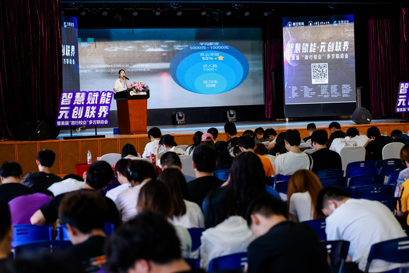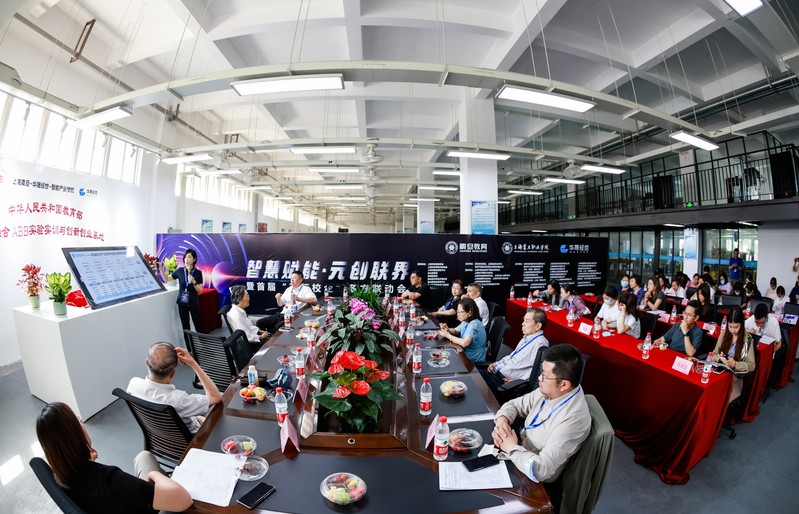 寶山高新產(chǎn)業(yè)園代表、行業(yè)協(xié)會代表、學(xué)校代表、企業(yè)代表一同為智慧賦能 元創(chuàng)聯(lián)界——首屆“政行校企”多方聯(lián)盟揭幕。