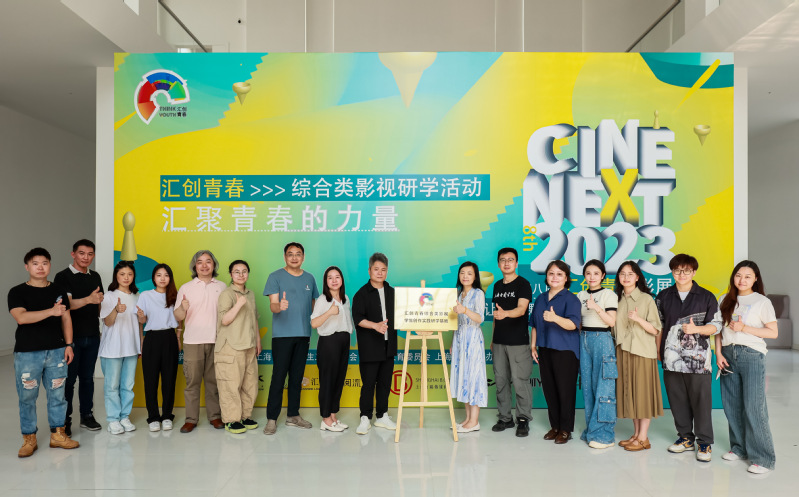 在活動的最后,各學校帶隊老師與片場負責人見證了“匯創(chuàng)青春”綜合類影視學生創(chuàng)作實踐研學基地掛牌,并一起合影留念。