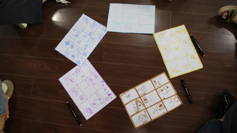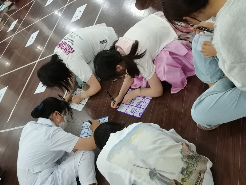 活動之初,我們請8間宿舍成員為自己的宿舍起個名字,并通過舞蹈動作等形式表達出宿舍的口號和舍歌,同學們表達輕松自由,氣氛十分活躍。熱身活動后,通過繪畫的形式,在九宮格中表達自己入學至今9個月以來的情緒旅程,并在宿舍內(nèi)部溝通討論,最后由宿舍長呈現(xiàn)宿舍成員遇到的問題及解決方案。