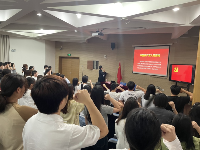 最后,全體畢業(yè)生黨員在夏臻副書記的帶領(lǐng)下,面對(duì)黨旗舉起右手,共同重溫入黨誓詞。