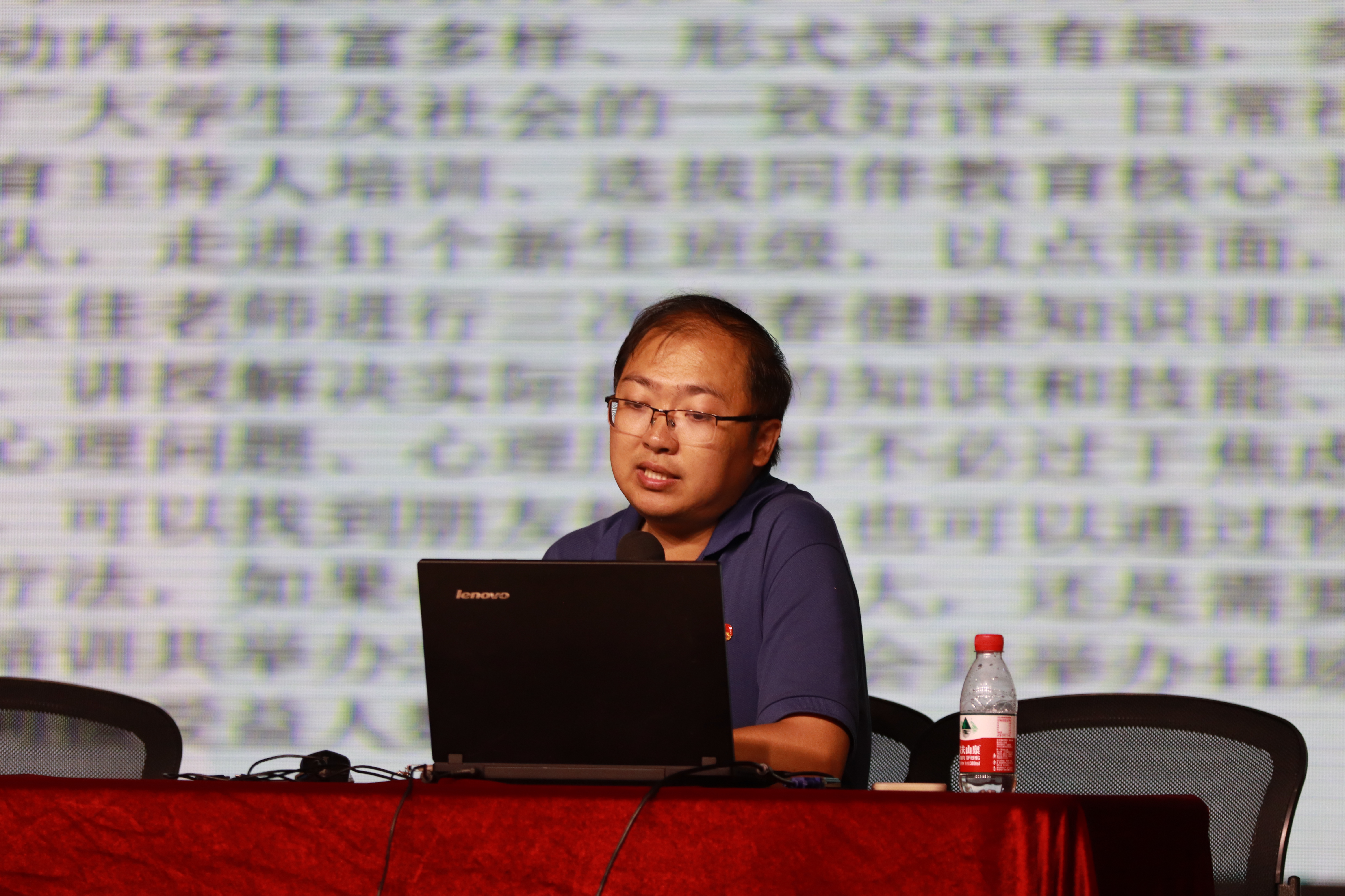 團(tuán)委副書記戴昊奇介紹了我校志愿公益類、學(xué)術(shù)科技類、文化活動(dòng)類以及體育活動(dòng)類等28個(gè)社團(tuán)的特色活動(dòng)。其中,電競(jìng)社的王者榮耀杯比賽引起了同學(xué)們的興趣。