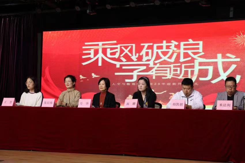 10月12日上午,上海震旦職業(yè)學(xué)院人文與教育學(xué)院2023級新生開學(xué)典禮在大禮堂隆重舉行。院長萬華、副院長張石偉、副院長高瞻、黨總支副書記王芳、團(tuán)總支書記吳蜜蜜、健身指導(dǎo)與管理專業(yè)主任相凱朝和基礎(chǔ)英語教研室主任米法利出席并發(fā)言。