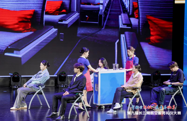 第三個環(huán)節(jié)是“展禮示儀”。震旦學子自行編排航空禮儀情景劇,展示在飛行中應對問題的能力。他們生動演繹出航空服務人員如何在確保飛行安全的同時提高乘客的滿意度,贏得了評委和觀眾的陣陣掌聲。