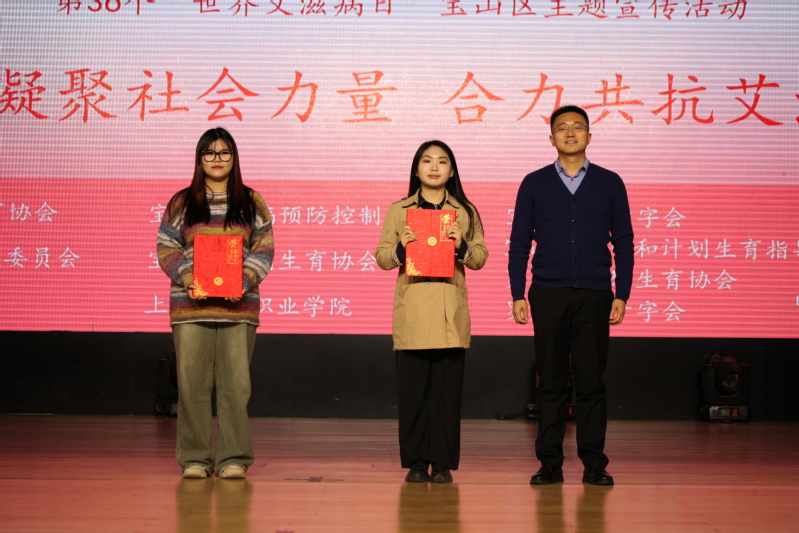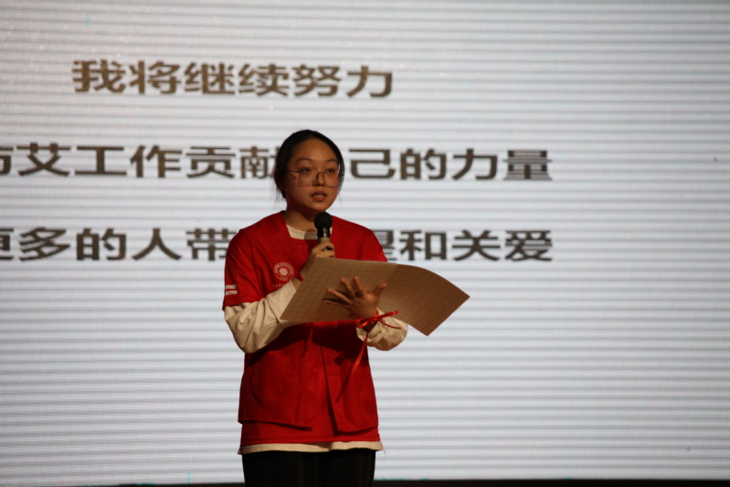 隨后,領(lǐng)導(dǎo)老師們?yōu)?/span>“為愛(ài)防艾·一路同行”短視頻征集大賽和主題海報(bào)征集大賽獲獎(jiǎng)的同學(xué)頒獎(jiǎng)。青春健康骨干潘芷茜、陳曦、鄧佳月分享了她們與防艾的故事,引導(dǎo)同學(xué)們關(guān)注生活,展示自我,營(yíng)造出濃厚的校園青春健康宣傳氛圍。