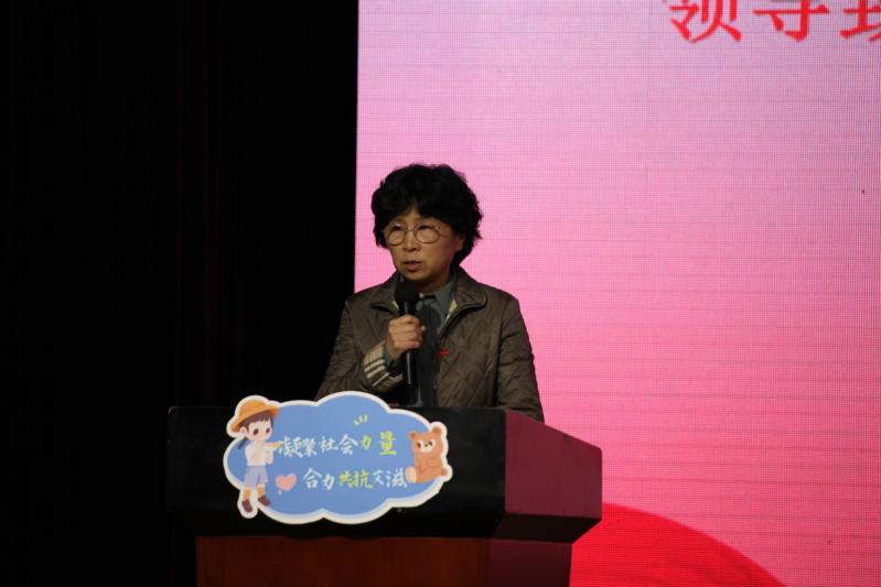 在下午的主題宣傳活動(dòng)中,副校長(zhǎng)王純玉致辭。她對(duì)我校多年來(lái)在防艾工作上取得的成績(jī)給予了充分的肯定,呼吁大家關(guān)注艾滋病防控問(wèn)題,消除對(duì)艾滋病病毒感染者和患者的歧視和偏見(jiàn),建立和諧關(guān)愛(ài)的社會(huì)。我校滿天星青春健康同伴社率先發(fā)起倡議,宣讀“共享健康?為愛(ài)防艾”倡議書(shū),星火志愿者共同宣誓,號(hào)召同學(xué)們提高防控艾滋病的意識(shí)以及自我防護(hù)能力,營(yíng)造良好的防艾教育宣傳氛圍。