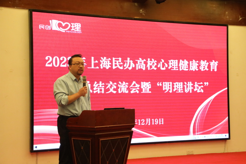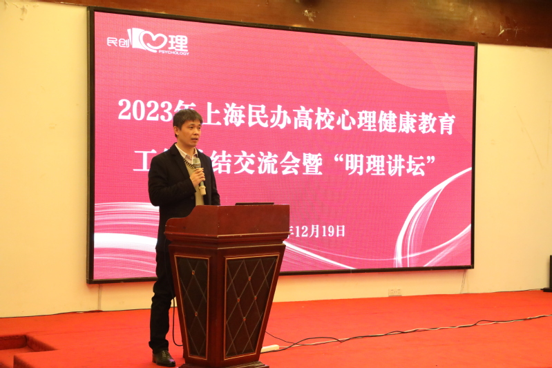 12月19日——20日,上海民辦高校心理健康教育總結(jié)交流會暨“明理講壇”在寶山區(qū)羅溪書院隆重召開。上海市民辦高校黨工委領(lǐng)導周光狼,全國高職高專思想政治理論課建設(shè)聯(lián)盟副秘書長、上海出版印刷高等??茖W校馬克思主義學院院長馬前鋒,上海震旦職業(yè)學院黨委書記、中國心理協(xié)會大學生心理咨詢委員會副主任黃晞建,上海震旦職業(yè)學院校長蔣心亞、黨委副書記夏臻,以及各民辦高校分管學生工作的副書記或副校長、學生工作部門負責人、心理健康教育中心主任等60余人參加了會議。會議由黨委副書記夏臻主持。
