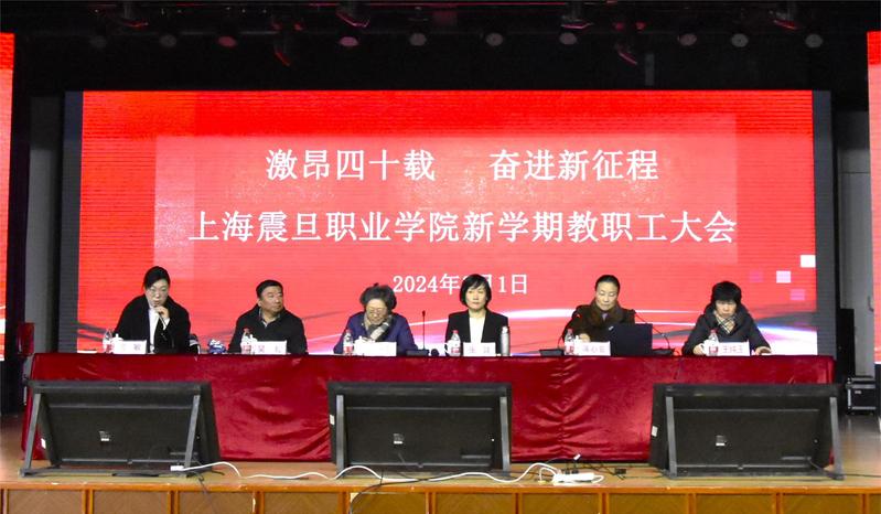 2024年3月1日上午,上海震旦職業(yè)學(xué)院在校大禮堂召開“激昂四十載 奮進(jìn)新征程”新學(xué)期教職工大會(huì)。震旦教育集團(tuán)創(chuàng)始人、震旦教育發(fā)展基金會(huì)理事長張惠莉,震旦教育集團(tuán)董事長張沈,黨委書記吳松,校長蔣心亞,副校長王純玉等領(lǐng)導(dǎo)出席大會(huì),上海震旦職業(yè)學(xué)院全體教職工參加會(huì)議。大會(huì)由組織部部長黃敏主持。