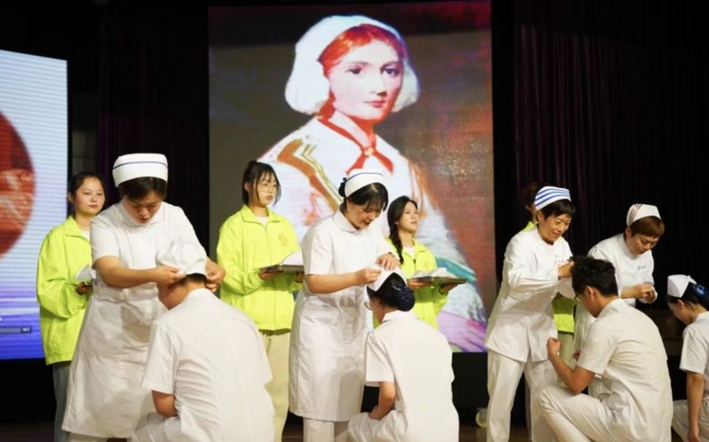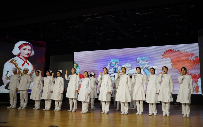 23級(jí)五年一貫制的詩(shī)朗誦“可敬的護(hù)士”,鼓舞同學(xué)們繼承和發(fā)揚(yáng)護(hù)理事業(yè)的光榮傳統(tǒng),以愛的名義堅(jiān)守使命和責(zé)任。
