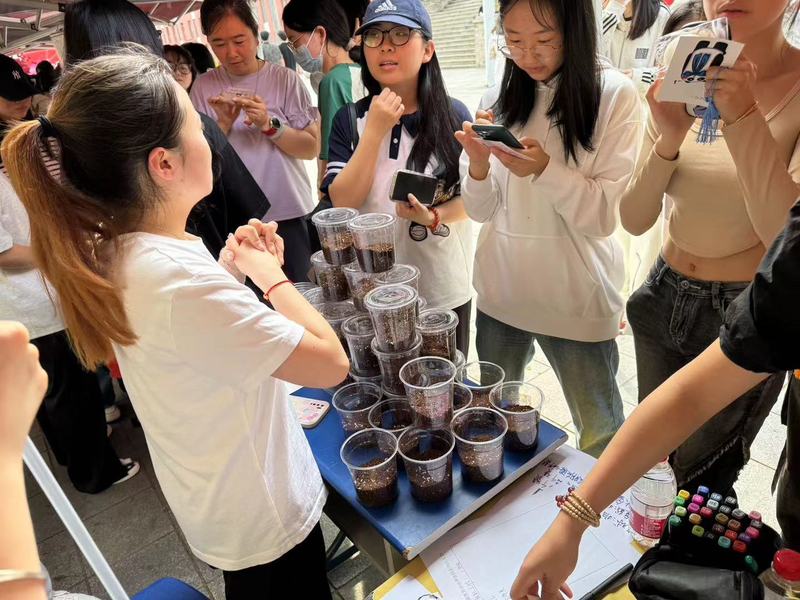 向參加活動的同學宣講“珍愛生命,快樂成長”,并將不同類型的小種子播種在充滿肥沃土壤的杯子里——“將春天,種進每一個明天”。學生在活動中學會了珍愛生命,用積極樂觀的心態(tài)對待生活。