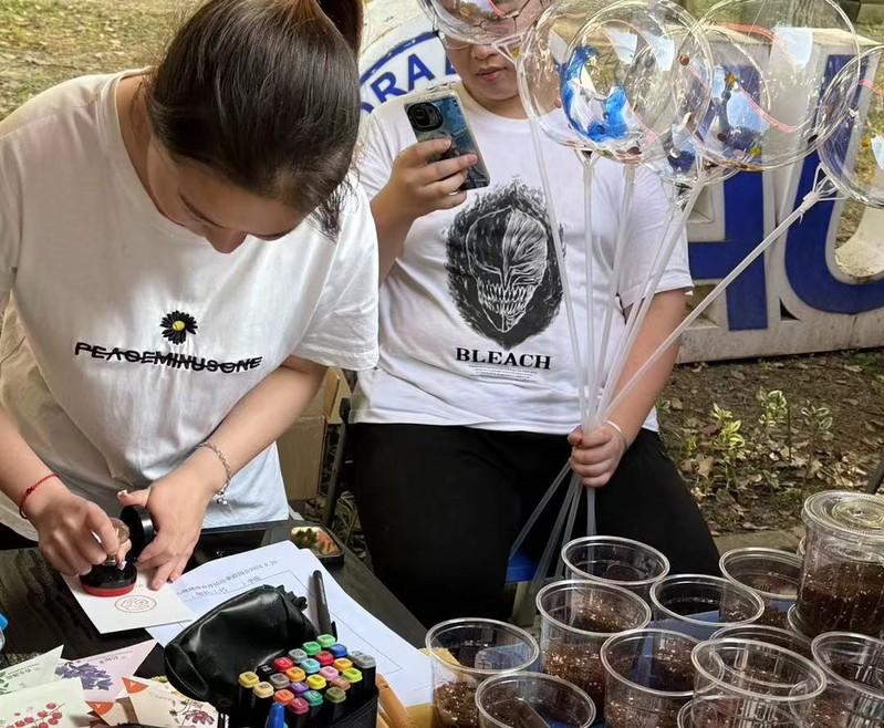 向參加活動的每一位同學發(fā)放一個晶瑩剔透的彩片氣球,我們稱它為“情緒的氣球”,學生在氣球上寫詩、繪畫,抒發(fā)自己內(nèi)心的情感......當氣球被高高舉起,迎著微風,沐浴著陽光,心中的霧霾都將散去。