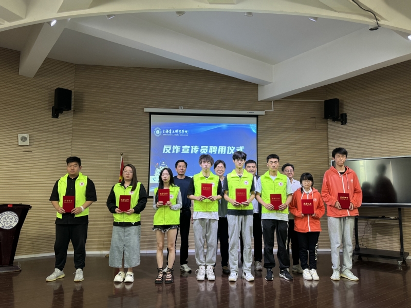 與會(huì)領(lǐng)導(dǎo)向宿管工作人員、各宿舍樓樓層長頒發(fā)反詐宣傳員聘書。