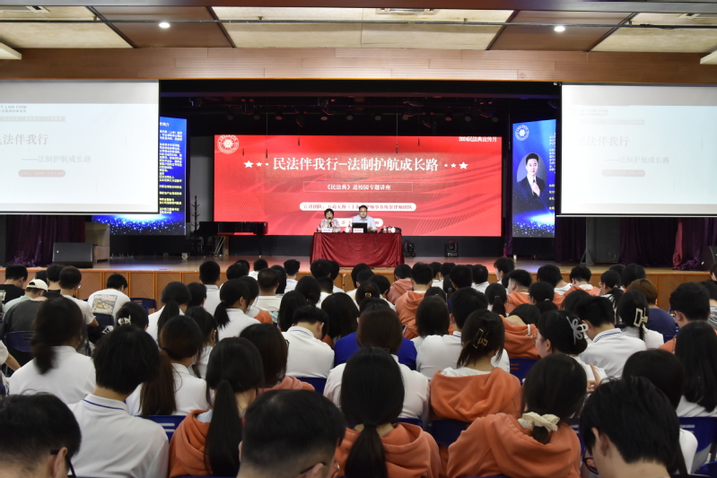 講座中,崔帥帥律師對民法典的立法精神、核心理念及運用方法等進行了闡述,并選取“公民的人格權受法律保護”、“網絡安全與個人信息保護”、“校園安全事故責任問題”、“校園網絡借貸風險防范”、“畢業(yè)生勞動權益保護”五個篇章,結合典型案例,精準、全面、生動地闡釋了民法典與我們生活的密切關系。崔律師的講解既有理論的高度,又深入淺出,通俗易懂,讓師生們在輕松有趣的互動氛圍中學法懂法。