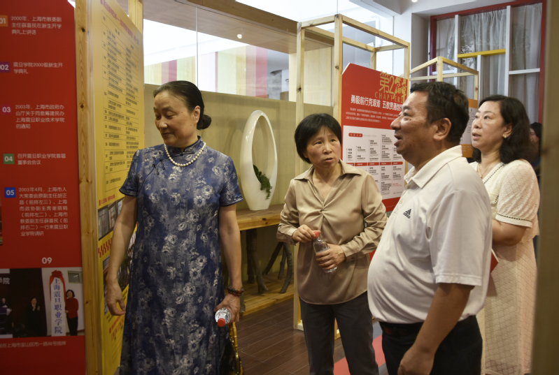 7月5日,“震古爍今四十載 蓄勢待旦啟新程”震旦教育四十周年校史展暨藝術(shù)作品展在上海震旦職業(yè)學(xué)院體藝樓剪彩開展。震旦教育創(chuàng)始人、震旦教育發(fā)展基金會理事長張惠莉,上海震旦職業(yè)學(xué)院黨委書記吳松、校長蔣心亞、黨委副書記黃敏、副校長王純玉出席活動?;顒佑赏跫冇裰鞒帧?/span>