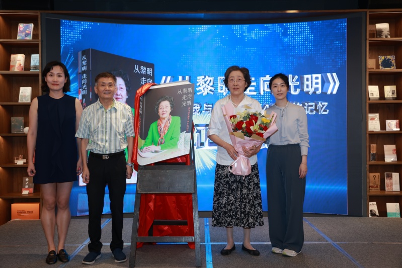 活動最后,震旦教育創(chuàng)始人、震旦教育發(fā)展基金會理事長張惠莉,震旦教育集團(tuán)董事長張沈,著名作家、中國作家協(xié)會副主席葉辛,上海交通大學(xué)出版社人文分社社長崔霞為《從黎明走向光明》新書揭幕。