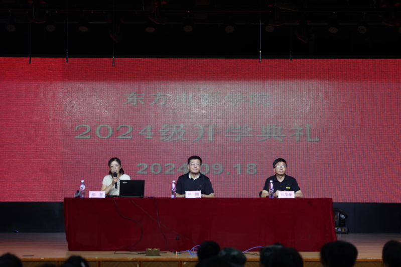 9月18日中午,東方電影學(xué)院在學(xué)校禮堂舉行了2024級(jí)新生開學(xué)典禮暨入學(xué)教育大會(huì)。東方電影學(xué)院院長(zhǎng)郜明,副院長(zhǎng)、黨總支書記祝華東,黨總支副書記邵慧,學(xué)院各專業(yè)主任、實(shí)訓(xùn)室主任、教師代表、全體輔導(dǎo)員以及2024級(jí)新生參加了大會(huì)。大會(huì)由邵慧副書記主持。