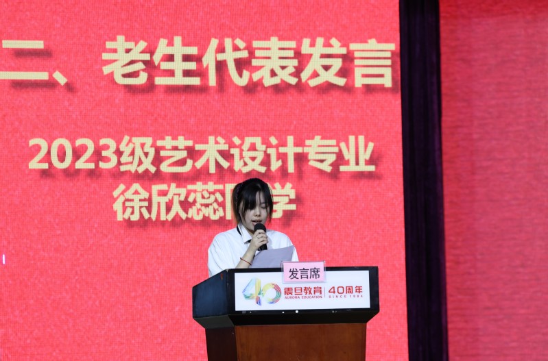 老生代表——2023級(jí)藝術(shù)設(shè)計(jì)專業(yè)徐欣蕊、新生代表——2024級(jí)傳播與策劃專業(yè)二班孫琨澎分別發(fā)言。徐欣蕊分享了她在東方電影學(xué)院的學(xué)習(xí)和生活經(jīng)驗(yàn),鼓勵(lì)新生們珍惜時(shí)光,努力學(xué)習(xí)。孫琨澎代表全體新生表達(dá)了對(duì)大學(xué)生活的期待和決心,表示將不負(fù)眾望,刻苦鉆研,為學(xué)院爭(zhēng)光添彩。